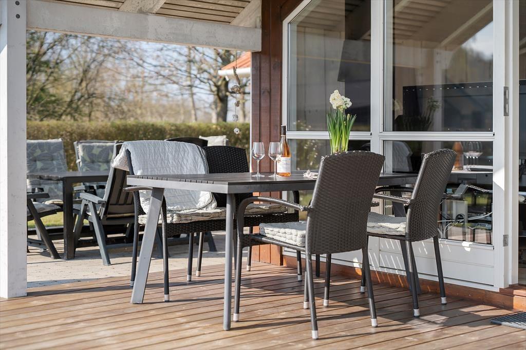 Udenfor fortsætter feriestemningen i den hyggelige, lukkede have, hvor der både er plads til afslapning og leg. De store terrasser lægger op til lange sommerdage under åben himmel – med morgenkaffe i solen, fælles grillmiddage og sene aftener under stjernerne. Terrassen er indrettet med komfortable havemøbler, og haven byder på fine kroge, hvor du kan finde læ, nyde en bog eller bare læne dig tilbage og lytte til fuglesang. Børnene vil elske gyngen og den grønne plæne, hvor fantasien kan få frit spil. Alt sammen i rolige omgivelser med trygge rammer, hvor hele familien kan nyde udelivet i fred og ro – kun få skridt fra vandkanten.