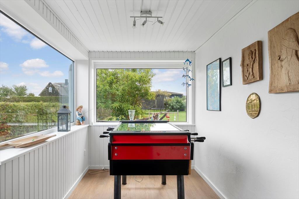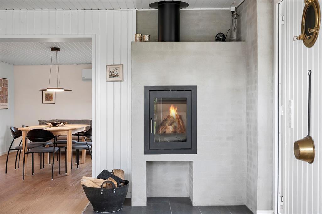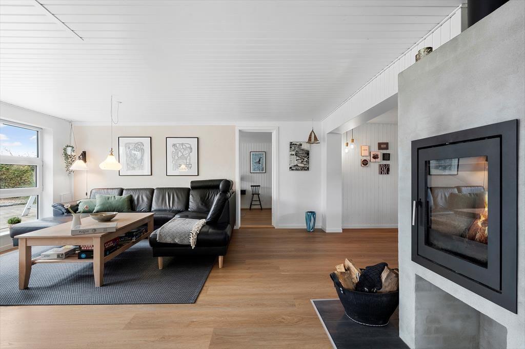 Når du træder ind i dette sommerhus, mødes du af en lys og indbydende atmosfære, der straks får skuldrene til at sænke sig. Indretningen er enkel og hyggelig, og de gode soveværelser giver plads til ro og afslapning efter en dag fyldt med oplevelser. Det åbne opholdsrum skaber den perfekte ramme for fælles måltider, brætspil og gode samtaler. Herfra kan du nyde udsigten til den grønne have gennem de store vinduer, der lader lyset strømme ind og giver en naturlig forbindelse mellem inde- og udeliv. Huset emmer af ferieånd, hvor man hurtigt føler sig hjemme og finder den ro, som hverdagen ellers sjældent giver plads til.