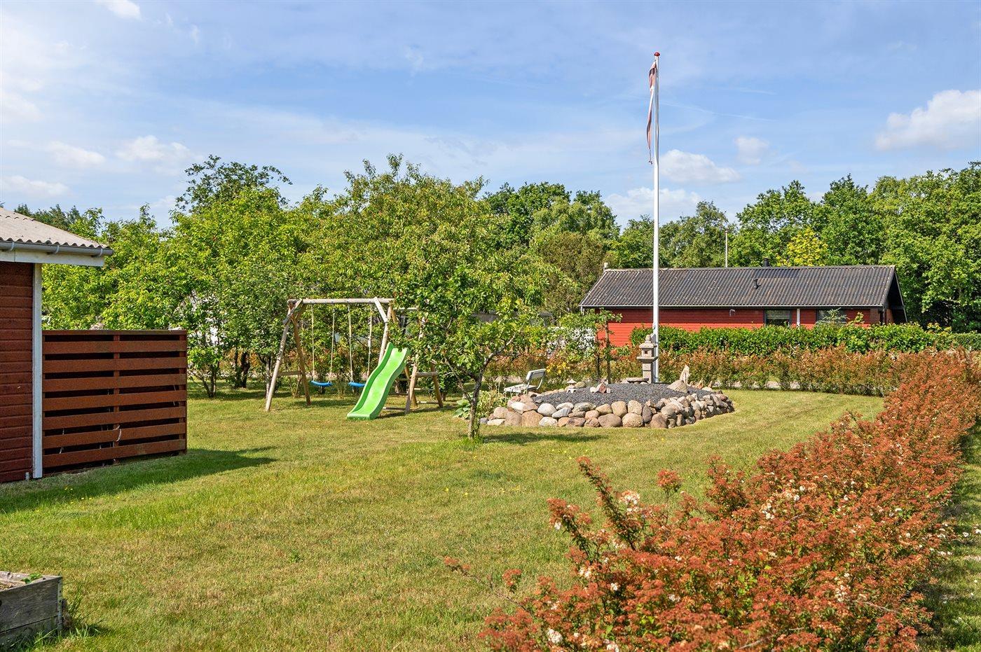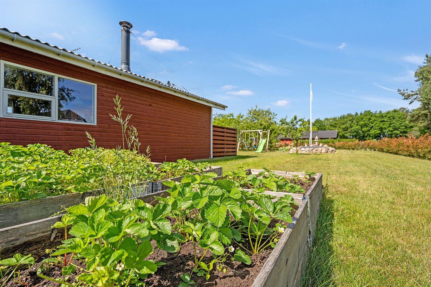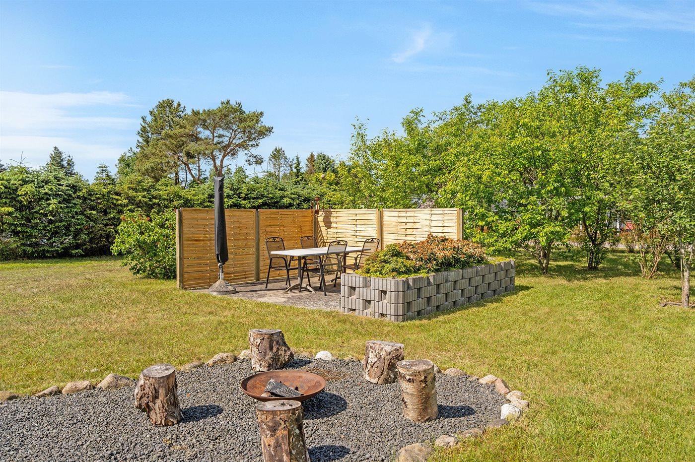 Ferieboligen er beliggende på en 1272 m² stor havegrund. Der er 1430 m til havet. Nærmeste forretning er beliggende i en afstand af 2000 m. Til ferieboligen hører 45 m² terrasseareal. Ligeledes er der adgang til udestue. Gynge. Sandkasse. Petanque. Grill til rådighed. Der er carport til rådighed. Parkering ved ferieboligen.