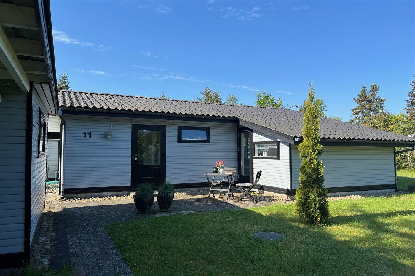 Hyggeligt sommerhus nær børnevenlig sandstrand med moderne faciliteter og dejlig have i Hals.