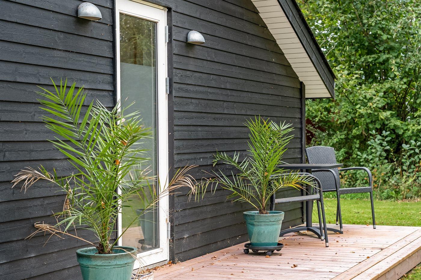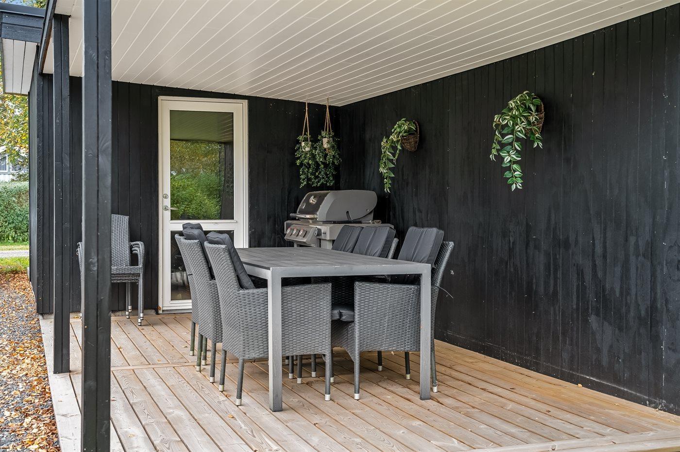Udelivet kan nydes på den store åbne terrasse eller den overdækkede terrasse, hvor grillen står klar til hyggelige måltider under åben himmel. Haven, som er indhegnet af et 60 cm højt hegn, indbyder til leg og sjov med gynge og rutsjebane, som børnene vil elske.