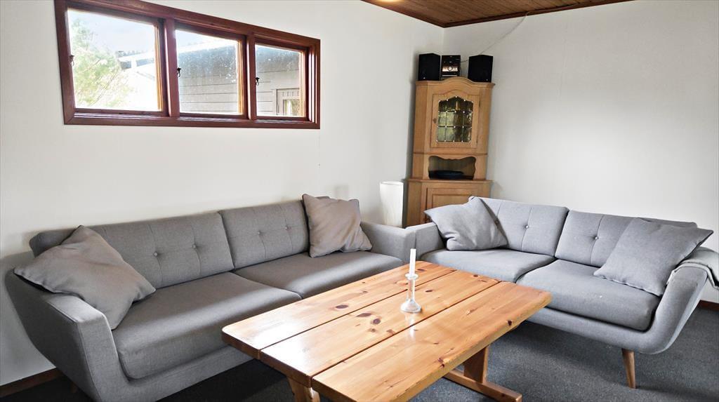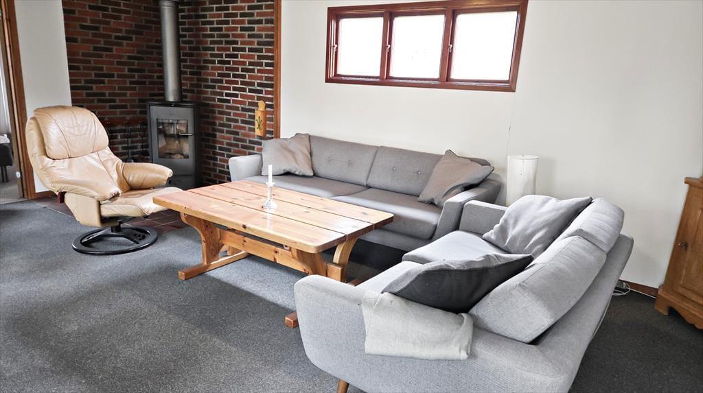 Helårsanvendeligt sommerhus som er indrettet med separat køkken og opholdsstue. Nyere lyst Køkken som indeholder indbygget ovn, kogeplader med induktion, opvaskemaskine, mikroovn og god spiseplads. Entre med køleskab med fryser. Opholdsstue med udgang til skøn udestue indeholder brændeovn, sofa, lænestole og tv med danske, svenske, norske og tyske kanaler. Badeværelse med bruseniche, klinkegulv og gulvvarme. Bryggers med vaskemaskine og tørretumbler. Tre soveværelser, to med dobbeltsenge og et med en dobbelt sovesofa Huset opvarmes med varmepumpe, Brændeovn og elvarme.
