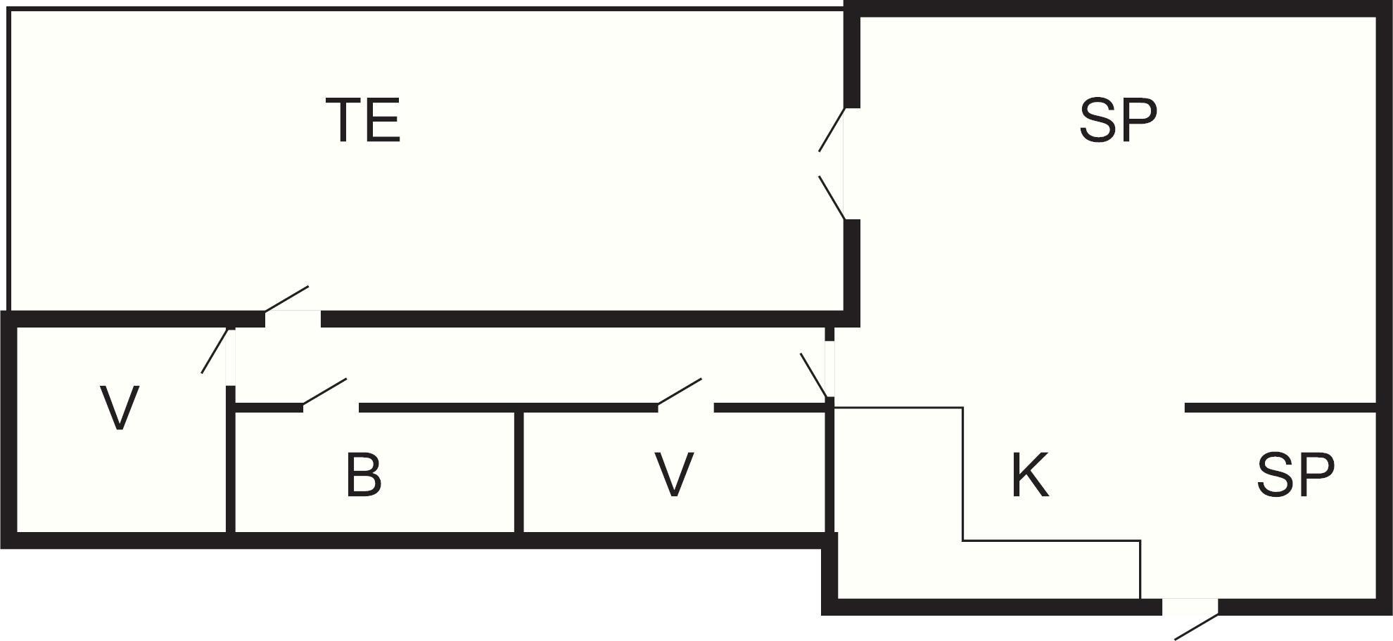 2 Soveværelser: (2S)+(2K), barneseng