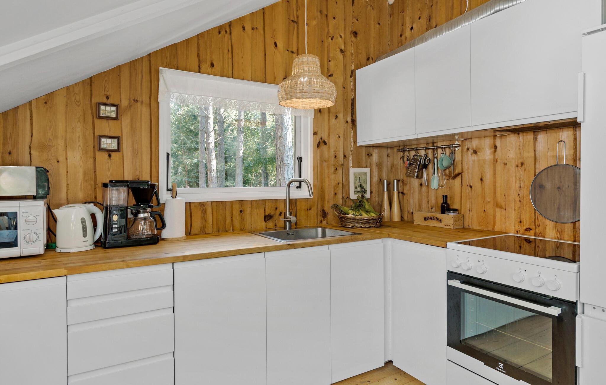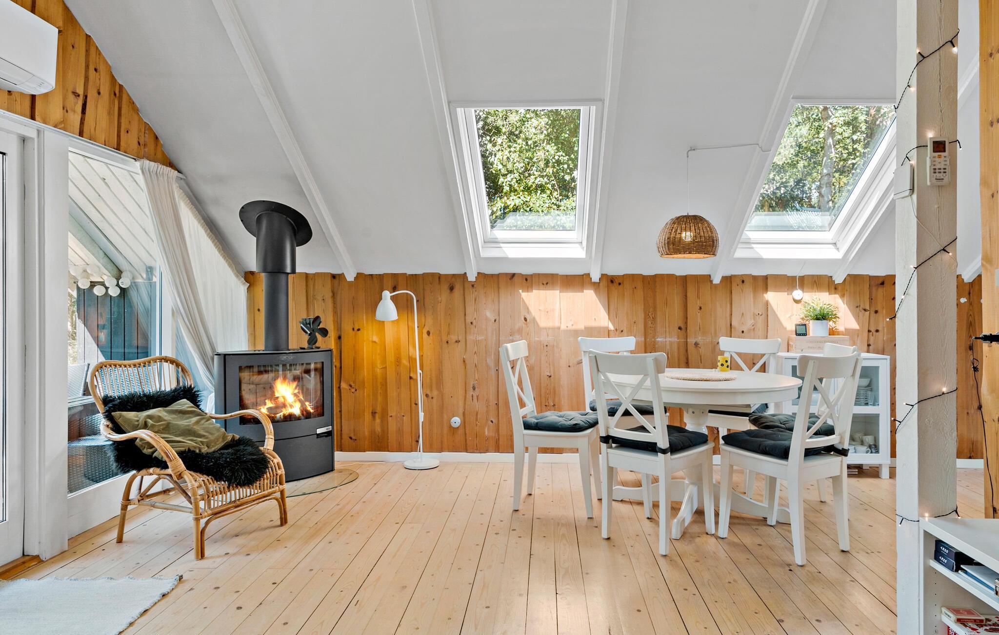 Velkommen til dette indbydende hus, som ligger på en dejlig grund, der er omgivet af træer. Indendørs venter rustik charme og hjemlige indretningsløsninger, så her er det nemt at sænke skuldrene og koncentrere sig om at holde fri. Glæd jer til skønne aftener efter dagens udflugter, hvor hele familien kan sætte sig til rette foran brændeovnen, nyde tiden sammen og lægge planer for de kommende feriedage.