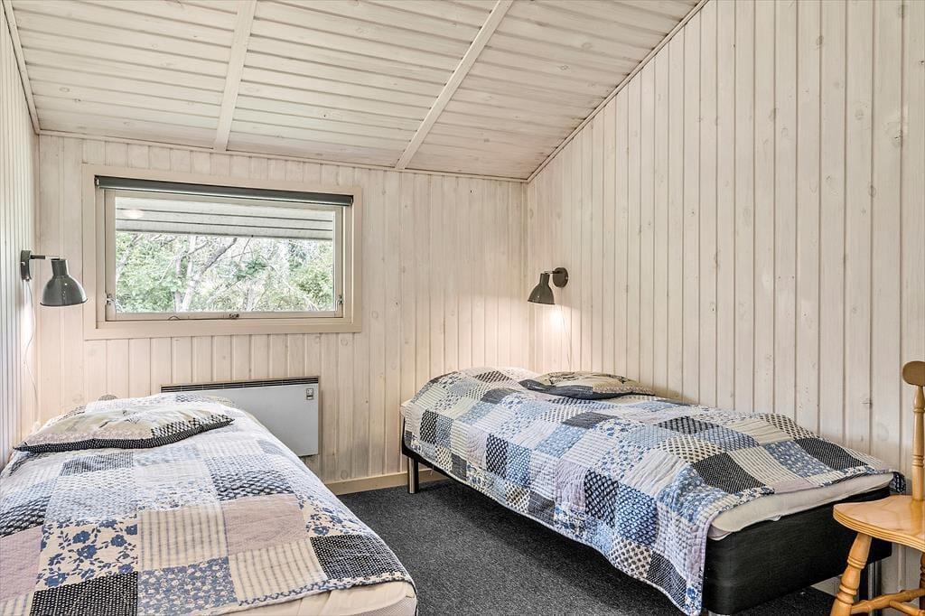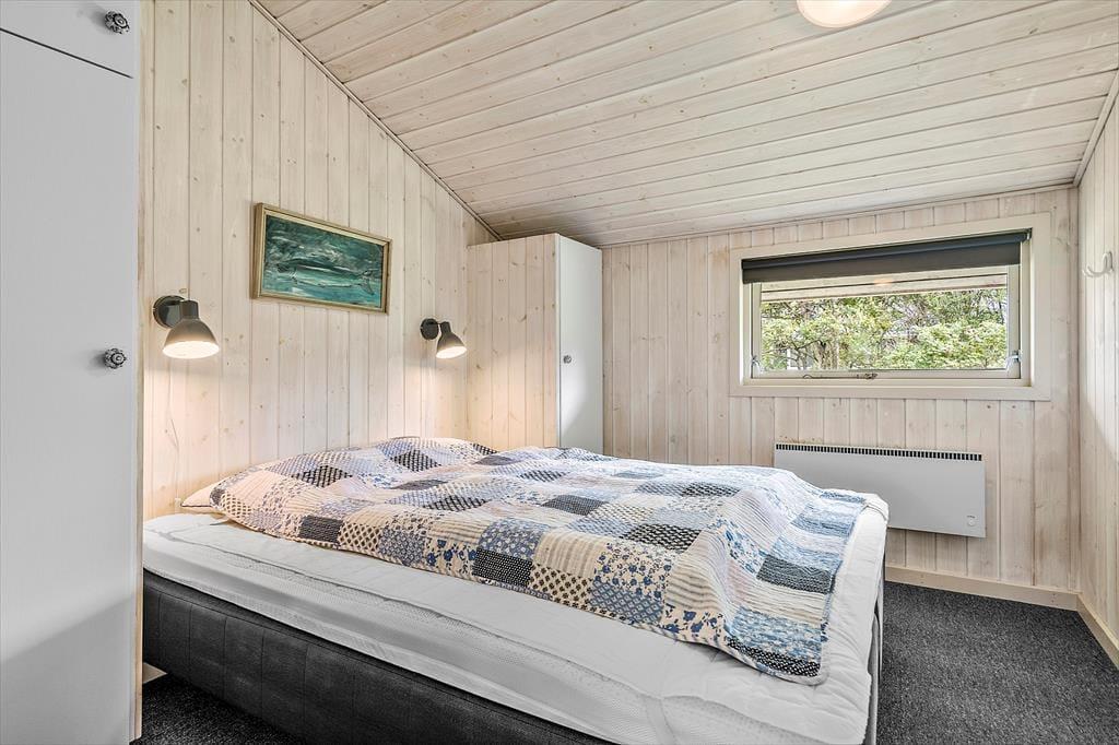 Her på Sigfred Jensens Vej 9 kan I se frem til at holde ferie i et velindrettet sommerhus på 84 m2. Den gode planløsning byder på tre soveværelser, hvor alle senge er med premium boksmadrasser og luksus topmadrasser i memory skum. Et badeværelse og en indbydende opholdsafdeling, så I kan nemt være seks personer samlet i huset. I opholdsafdelingen er der åben forbindelse mellem stuen og køkkenet, og med spisebord, sofaafdeling, brændeovn og parabol-tv er der lagt op til mange gode hyggestunder. På en kølig dag er det også skønt at læne sig tilbage i saunaen, der ligger som del af husets badeværelse. Sommerhuset er for øvrigt velegnet til børnefamilier, for der er både højstol og barneseng inden døre – plus diverse praktiske faciliteter som opvaskemaskine, vaskemaskine og tørretumbler.