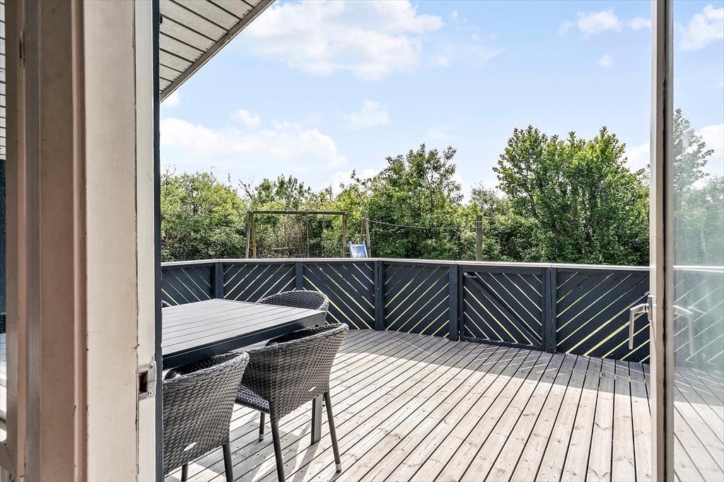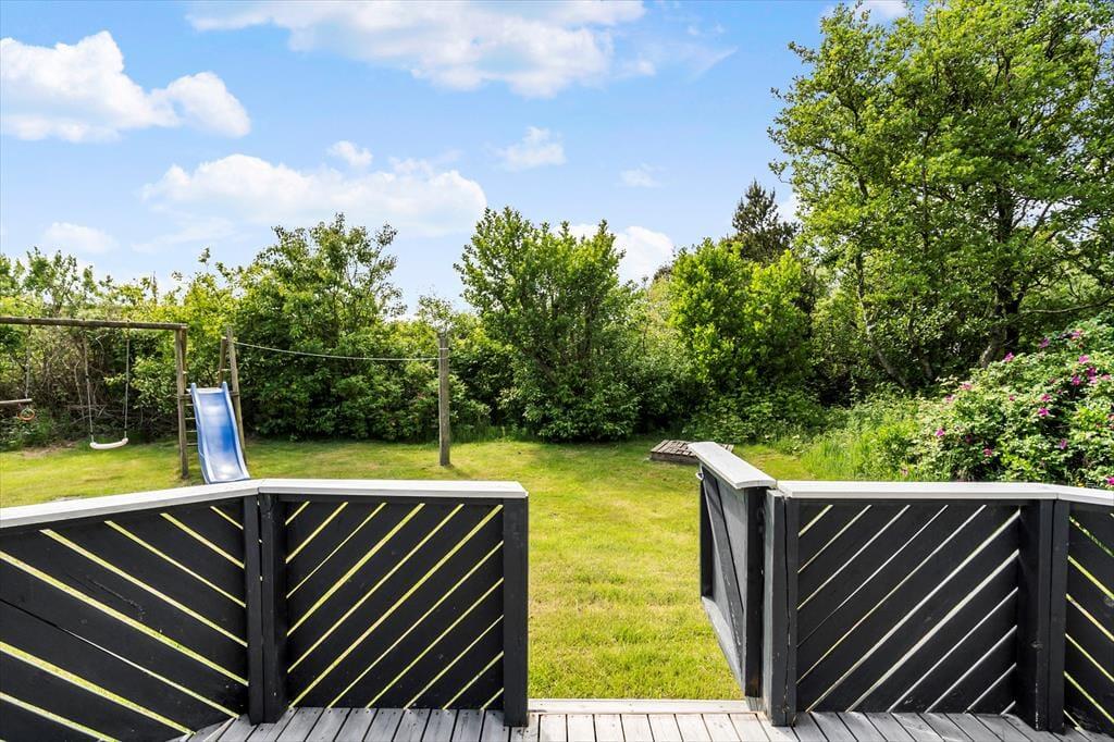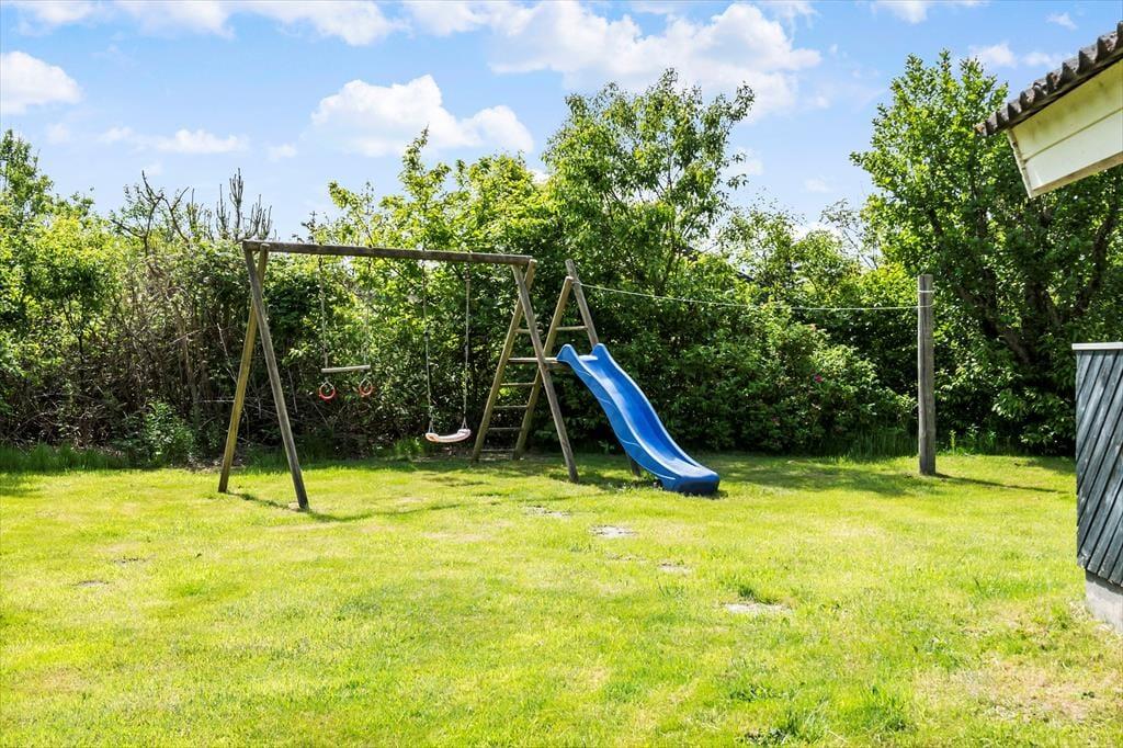 På den 1200 m2 store naturgrund er der legestativ med gynger og en sandkasse til børnene, og hele familien kan spille bold og lege fangeleg på græsplænen. Har I helt små børn med, er det for øvrigt rart, at terrassen er helt aflukket – for så kan I nemmere holde styr på tropperne, mens de voksne får en velfortjent kop eftermiddagskaffe i solen.