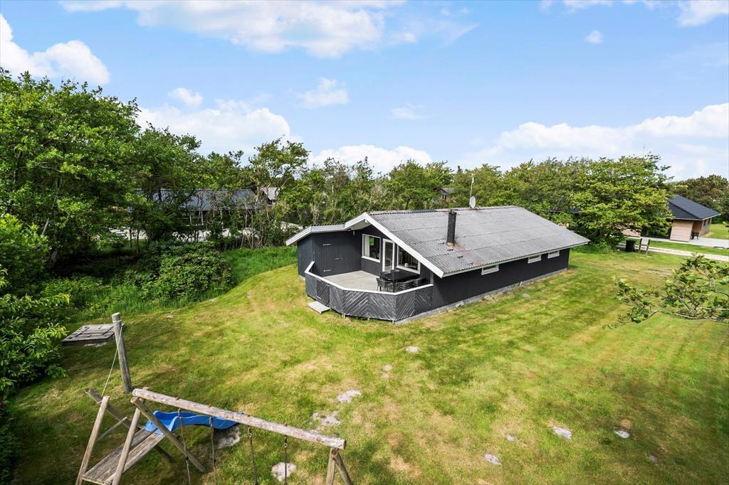Sommerhuset ligger dejligt ugeneret på en lille sidevej i Bjerregård – bare 850 meter fra stranden og endnu kortere fra den lokale, helårsåbne købmand. Her i den sydlige ende af Holmsland Klit kan I oplagt nyde ferielivet ved Vesterhavet, og hvis I vil vandre, cykle, fiske eller kigge på fugle, har I rig mulighed for at holde en aktiv ferie ude i naturen. Surfing og andre vandsportsaktiviteter kan også lade sig gøre, for der er flere gode surfspots på landtangen mellem Ringkøbing Fjord og Vesterhavet. En tur til Hvide Sande kan også anbefales, for her kan I opleve det spændende havnemiljø, tage til sildefestival, gå på restaurant og meget mere. Børnefamilier kan køre til Bork Vikingehavn og Bork Legeland, hvis ikke I sætter kursen mod Legoland, der ligger en time væk i bil.