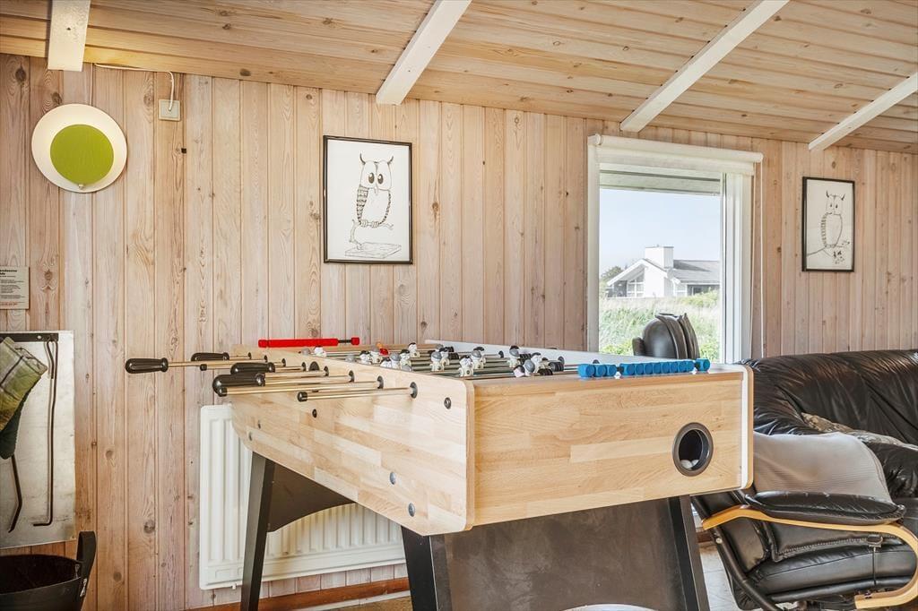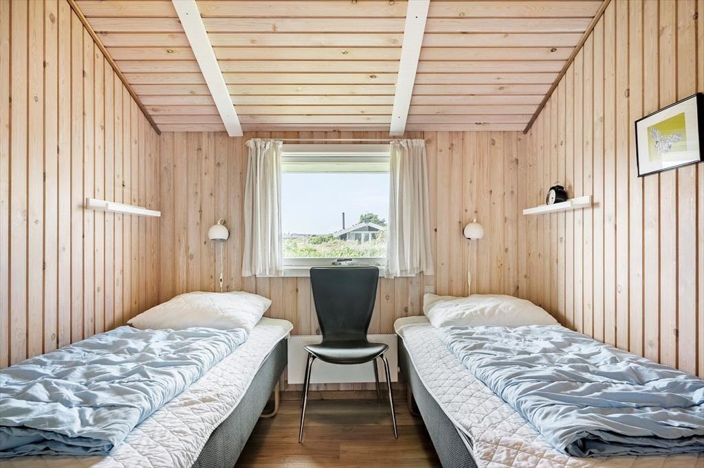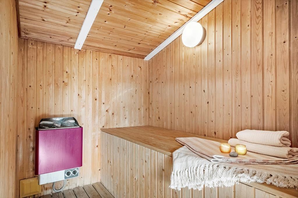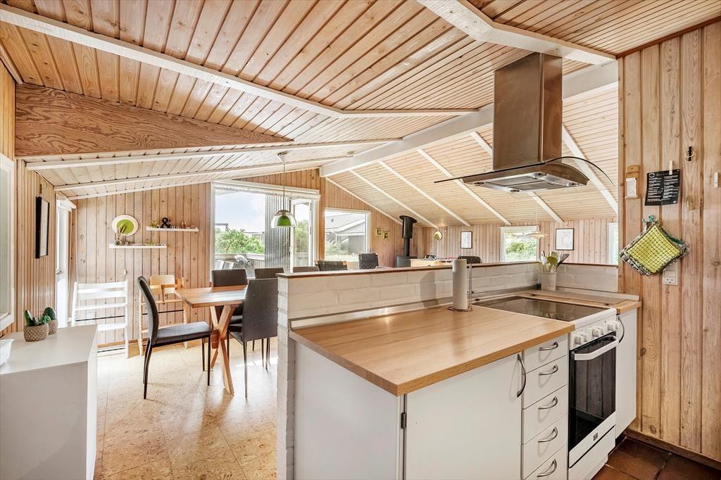 Hele 120 m2 får I at brede jer på inden døre i sommerhuset, der har plads til otte personer. Med fire soveværelser og to badeværelser egner huset sig til to børnefamilier, hvis ikke det er bedsteforældrene, I inviterer med på ferie. Lige meget hvad kan I se frem til at hygge jer i det åbne køkken og stuen, der har brændeovn, varmepumpe og fladskærms-tv med parabol og Chromecast. Der er også bordfodbold, så sofahyggen kan afveksles med en sjov turnering – og der er for øvrigt spil og legetøj til de yngste feriegæster. Måske især de voksne vil værdsætte, at der er spabad og sauna på det største badeværelse, så feriedagen kan afsluttes med en omgang velgørende wellness.