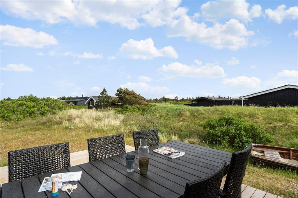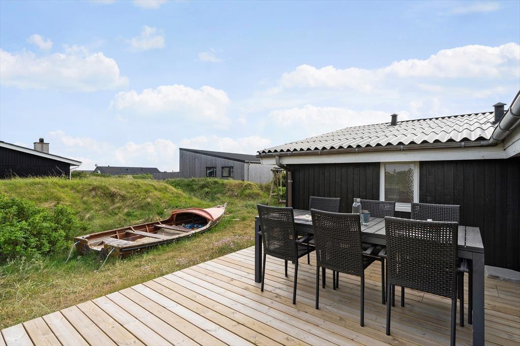 Fra sommerhuset kan I gå til Bjerregård Strand og Vesterhavet på cirka 10 minutter, og I har også nem adgang til den lokale købmand såvel som det åbne klit- og hedelandskab, der breder sig rundt om sommerhusområdet. Hvis I har medbragt eller lejet cykler, kan I følge den naturskønne cykelsti hele vejen til Hvide Sande, som er en populær ferieby for lystfiskere, surfere, børnefamilier og andre aktive feriegæster. I Bjerregård kan I også nyde godt af den unikke beliggenhed mellem Ringkøbing Fjord og Vesterhavet. For eksempel kan I på samme dag se solen stå op over fjorden og gå ned over havet – begge dele blot en kort gåtur fra sommerhuset. Og skulle det ikke være vejr til at bade i havet, har I som lejere af huset adgang til seks svømmehaller i området.