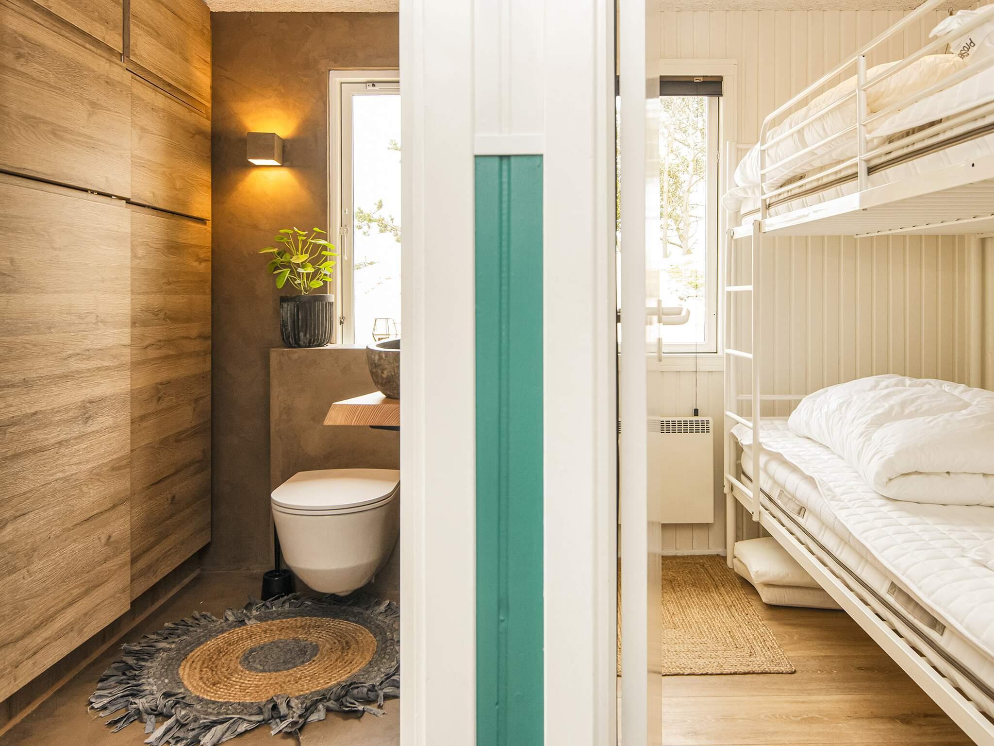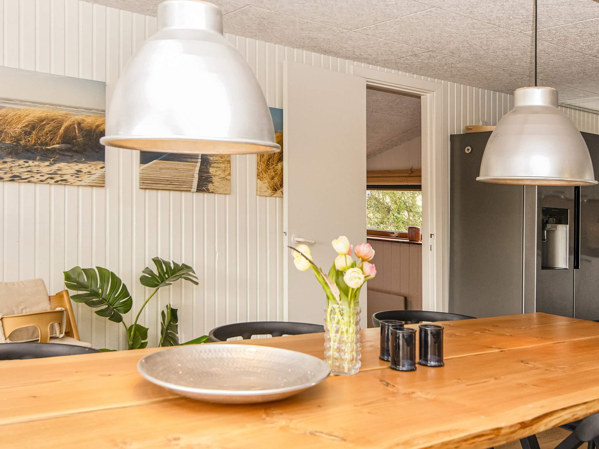 Midt i klitlandskabet, kun ca. 600 meter fra Vesterhavet ved Bjerregård, finder I dette sommerhus med bl.a. bordfodbold og motionscykel samt gratis, trådløst internet til underholdning. Huset er indrettet med et veludstyret køkken i åben forbindelse med den kombinerede opholds- og spisestue. Fra stuen er der to trin ned til to af soverummene, som begge er indrettet med dobbeltsenge. Derudover er der yderligere to soverum i huset, begge med køjesenge til to personer. Husets aktivitetsrum er adskilt fra stuen med en glasdør og et vinduesparti. Tilmed er der et gæstetoilet og et badeværelse med bruseniche. Derudover er der radio, tv med parabol, opvaskemaskine, vaskemaskine og tørretumbler. På en kølig sommeraften kan I sidde i stuemøblerne og kigge ud på de omkringliggende klitter mens I luner jer ved brændeovnen. Udlejes ikke til ungdomsgrupper.