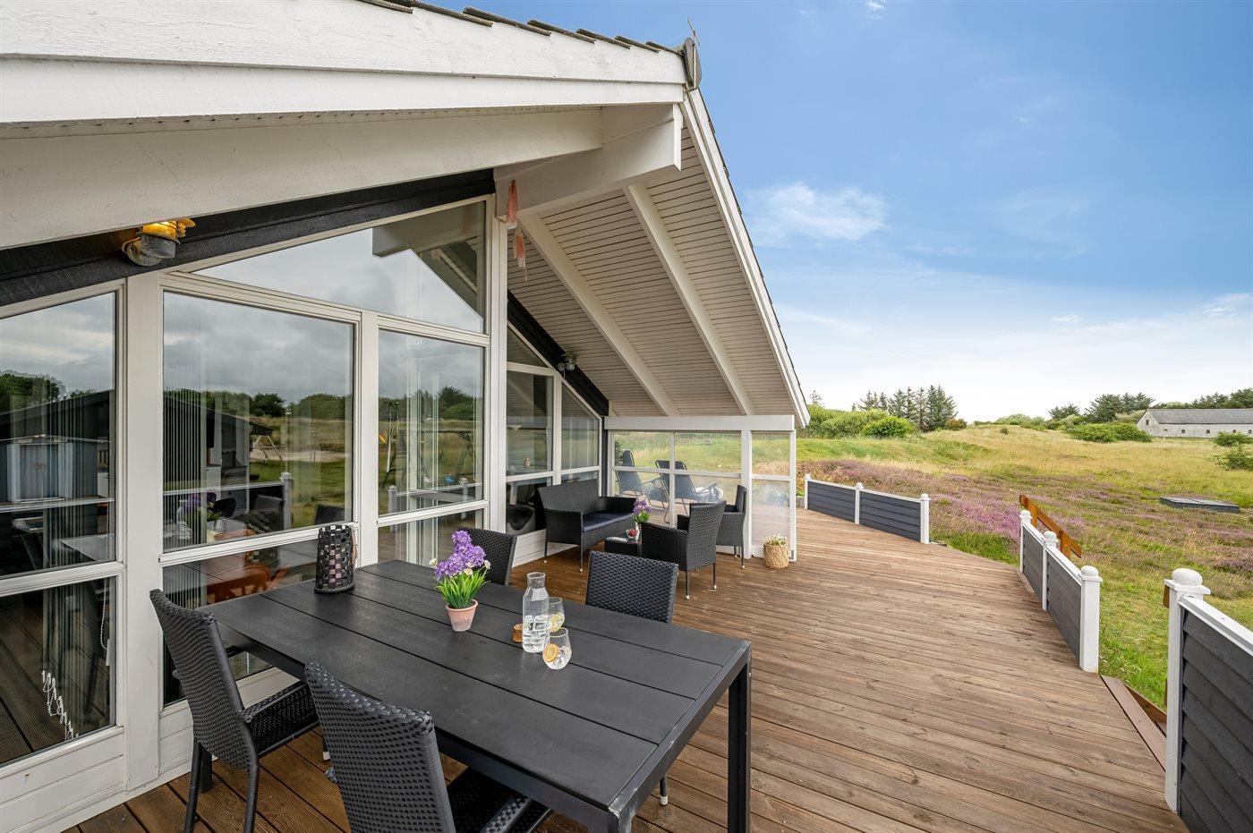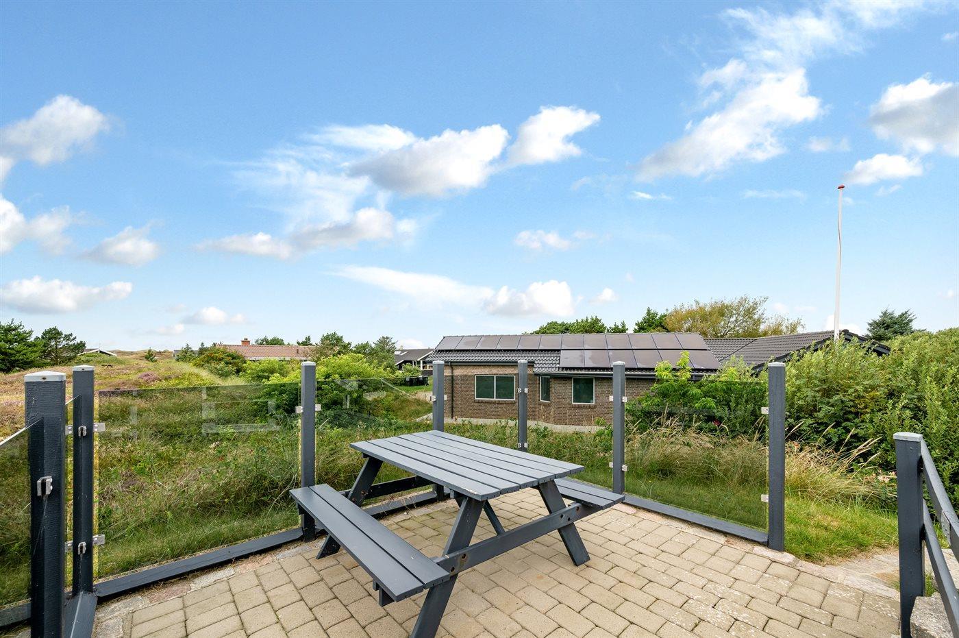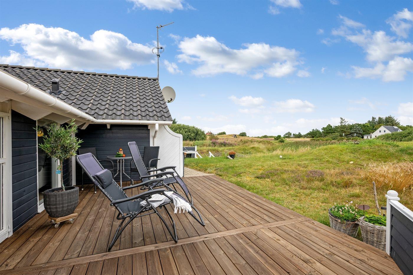 Ferieboligen er beliggende på en 3970 m² stor klitgrund. Der er 1000 m til havet. Der er 250 m til fjorden. Nærmeste forretning er beliggende i en afstand af 600 m. Til ferieboligen hører 60 m² terrasseareal. Desuden er der 11 m² overdækket terrasse. Der er redskabsrum. Gynge. Sandkasse. På lune aftener sørger en udendørs pejs for hyggelig stemning. Grill til rådighed. Parkering ved ferieboligen.