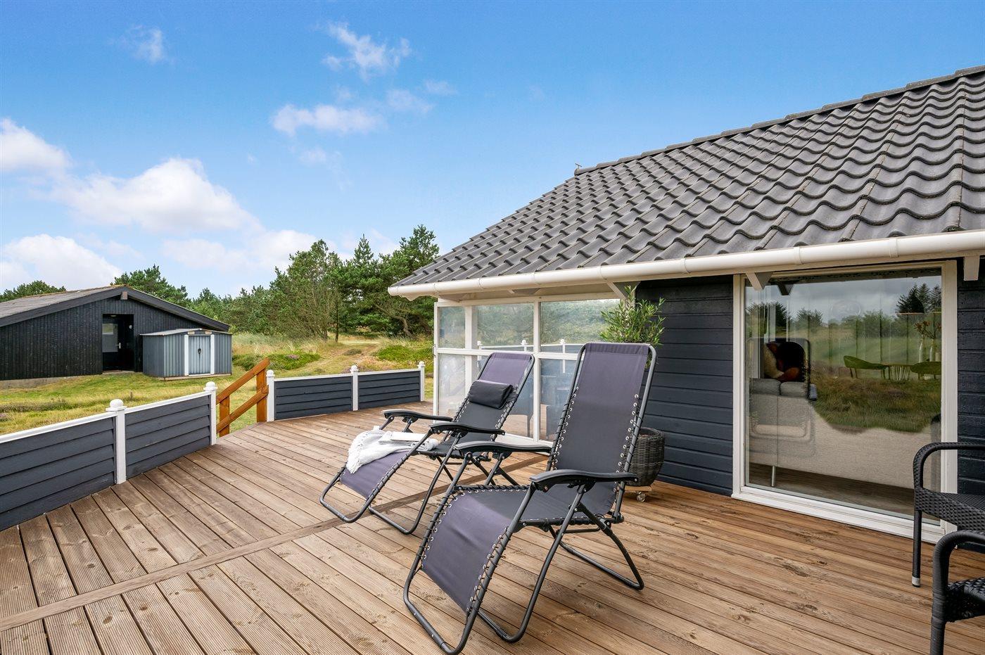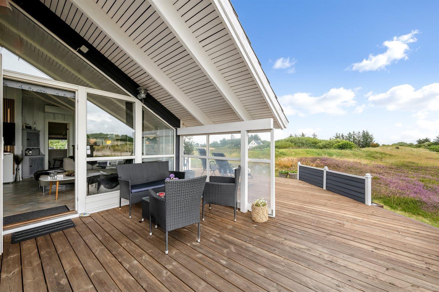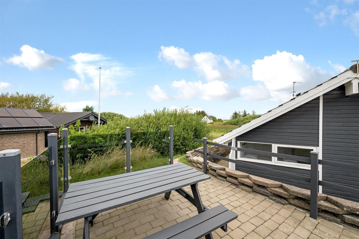 Ferieboligen er beliggende på en 3970 m² stor klitgrund. Der er 1000 m til havet. Der er 250 m til fjorden. Nærmeste forretning er beliggende i en afstand af 600 m. Til ferieboligen hører 60 m² terrasseareal. Desuden er der 11 m² overdækket terrasse. Der er redskabsrum. Gynge. Sandkasse. På lune aftener sørger en udendørs pejs for hyggelig stemning. Grill til rådighed. Parkering ved ferieboligen.
