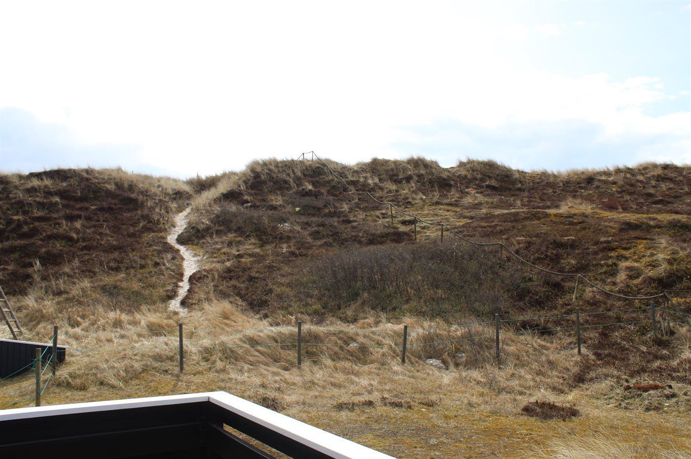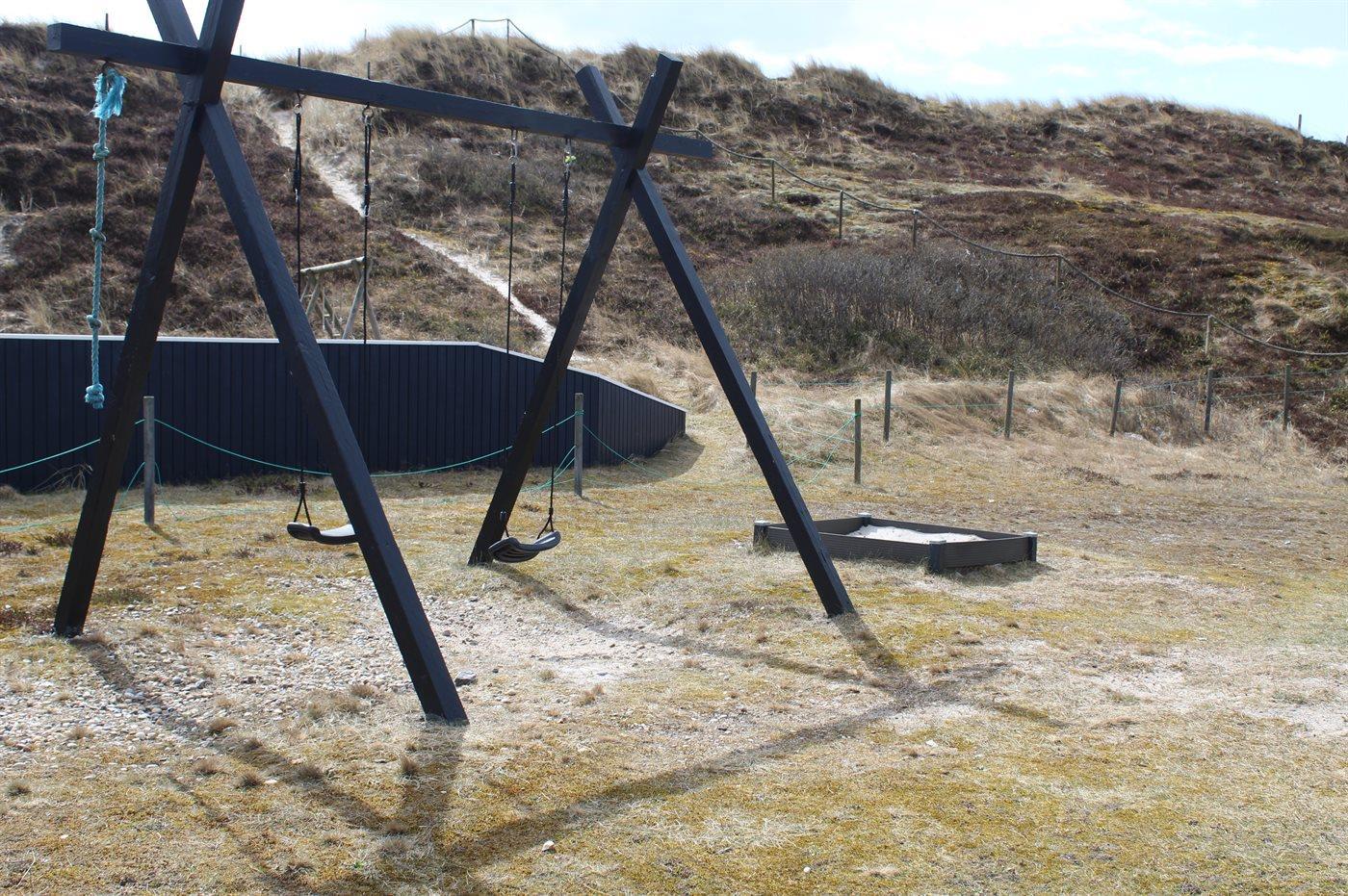 Ferieboligen er beliggende på en 1400 m² stor klitgrund. Der er 250 m til havet. Der er 1400 m til fjorden. Nærmeste forretning er beliggende i en afstand af 1700 m. Til ferieboligen hører 30 m² terrasseareal. Desuden er der 15 m² overdækket terrasse. Der er redskabsrum. Gynge. Sandkasse. Parkering ved ferieboligen.