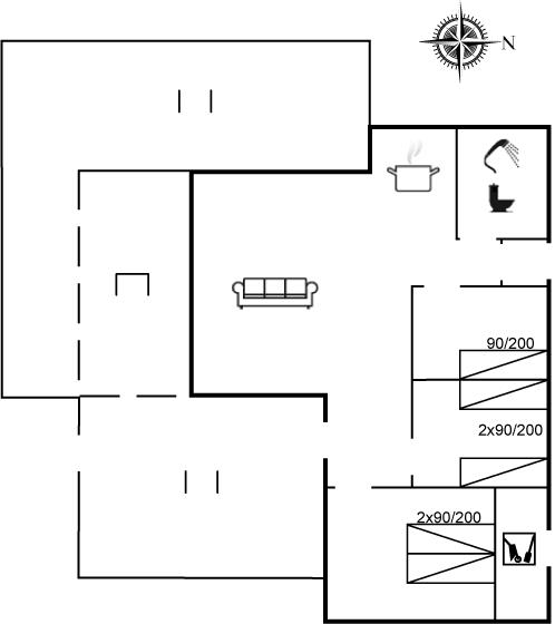 Der er i alt 3 soveværelser. Sovepladserne fordeler sig på: 1 soveplads i enkeltseng.4 sovepladser i elevationssenge. Derudover er der 1 stk. barneseng.