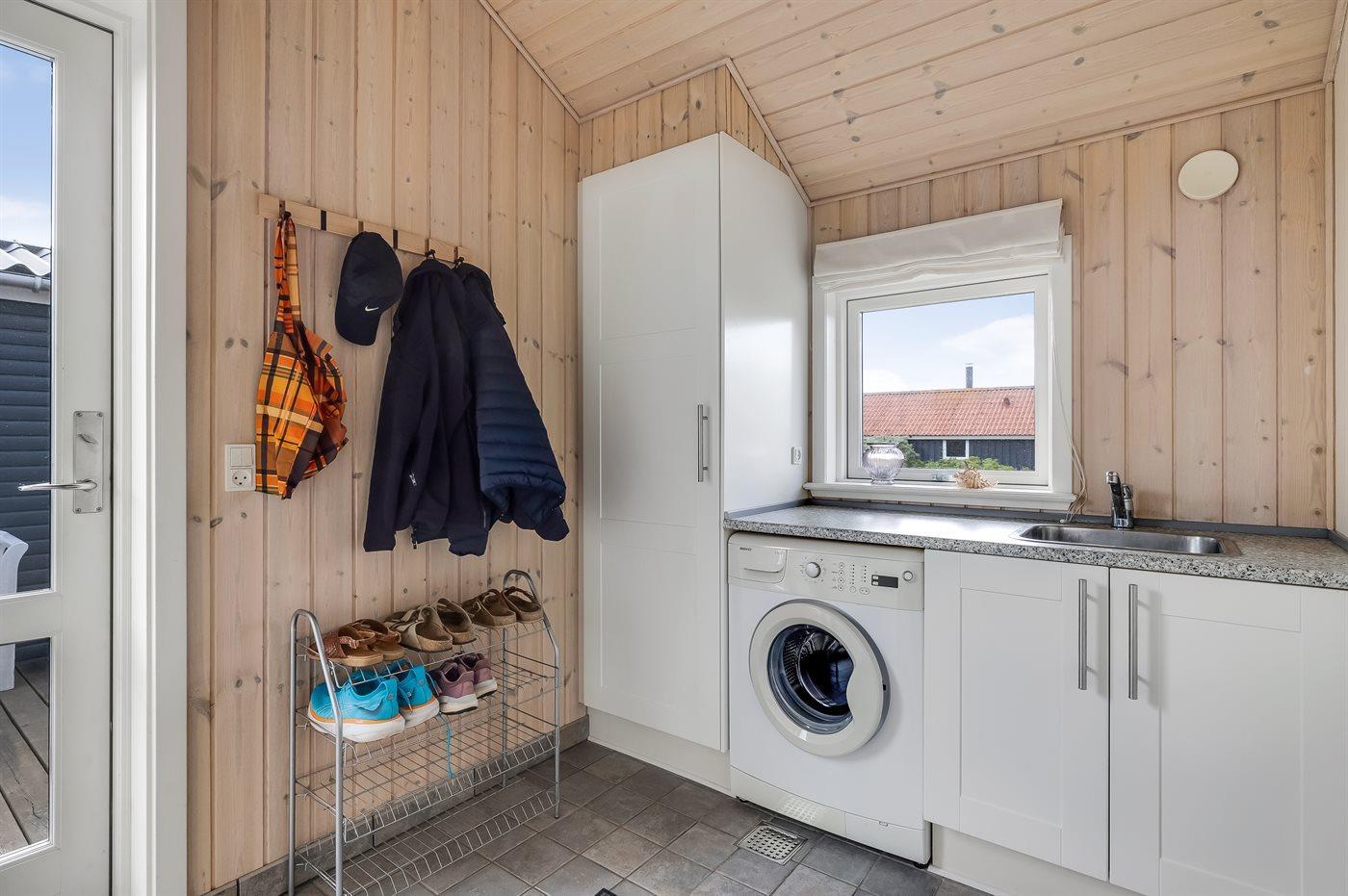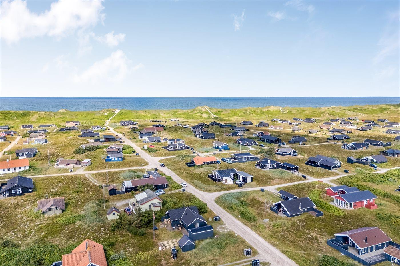 Ferieboligen er beliggende på en 1200 m² stor naturgrund. Der er 500 m til havet. Der er 500 m til fjorden. Nærmeste forretning er beliggende i en afstand af 2000 m. Til ferieboligen hører åbent terrasseareal. Desuden er der overdækket terrasse. Sandkasse. Grill til rådighed. Der er installeret stik til opladning af elbil. Type 2 stik. Med 11 kW ladeeffekt. Parkering ved ferieboligen.