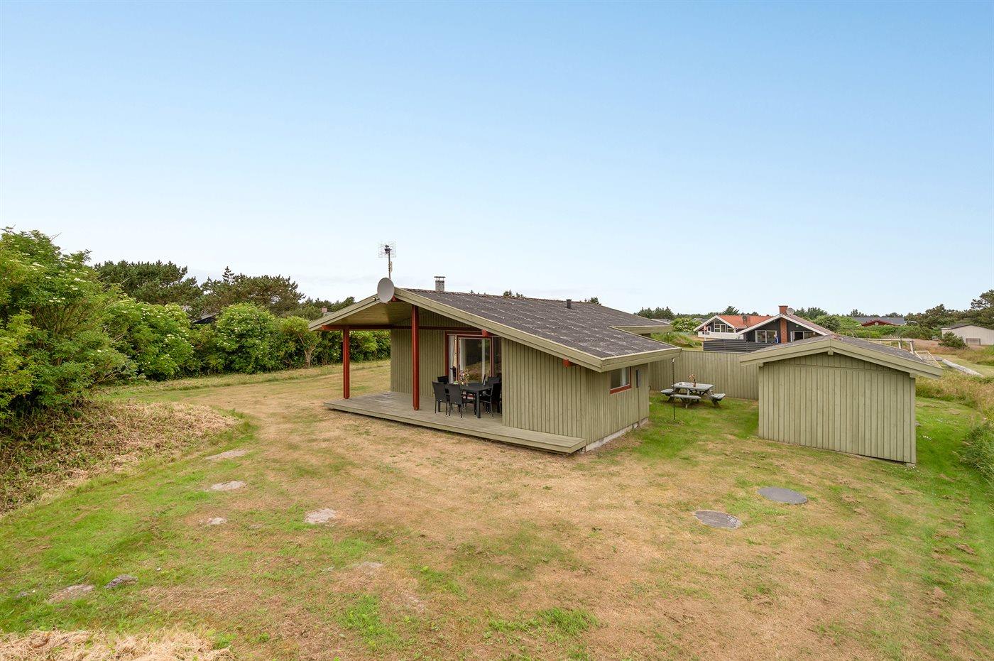 Et velholdt sommerhus beliggende midt imellem Vesterhavet og Ringkøbing Fjord - i et naturskønt område med gode muligheder for vandreture. Huset ligger på en stor naturgrund for enden af en blind vej.