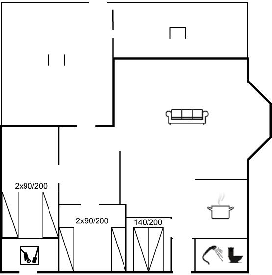 Der er i alt 3 soveværelser. Sovepladserne fordeler sig på: 2 sovepladser i dobbeltseng. 4 sovepladser i enkeltsenge.