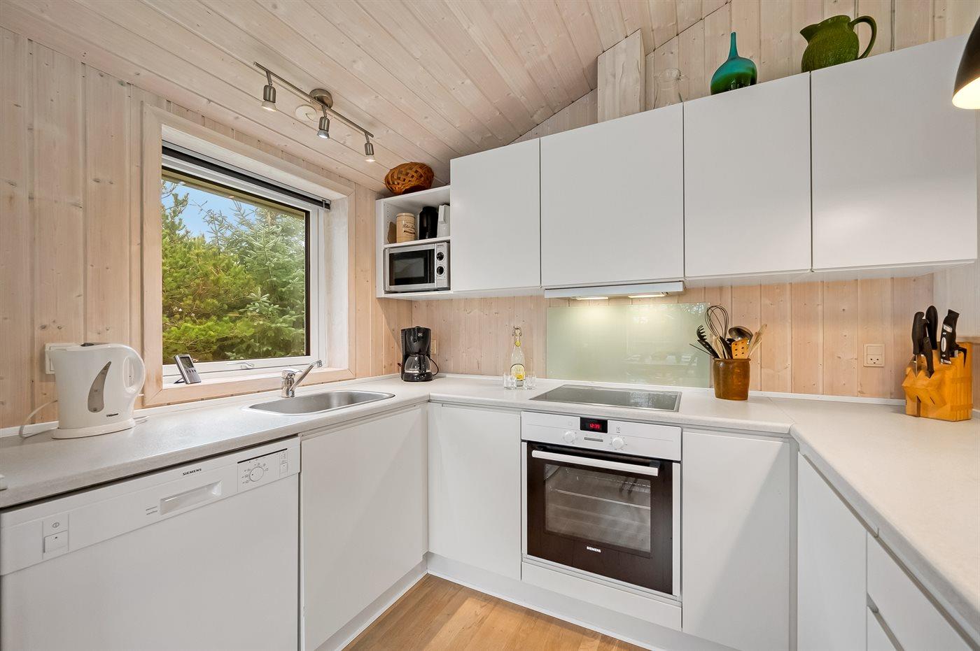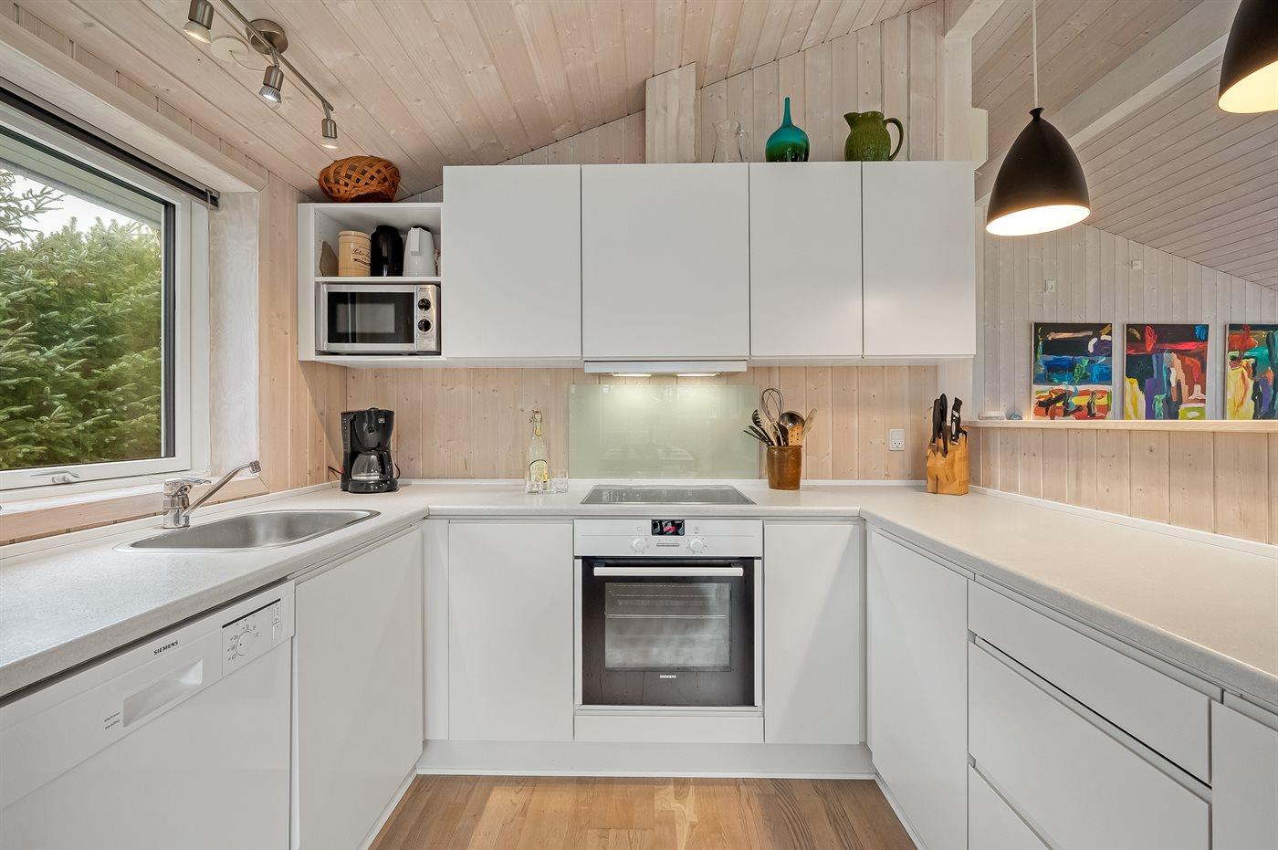 Køkkenet er udstyret med 1 køleskab. Der er 4 keramiske kogeplader, varmluftovn, mikrobølgeovn samt opvaskemaskine.