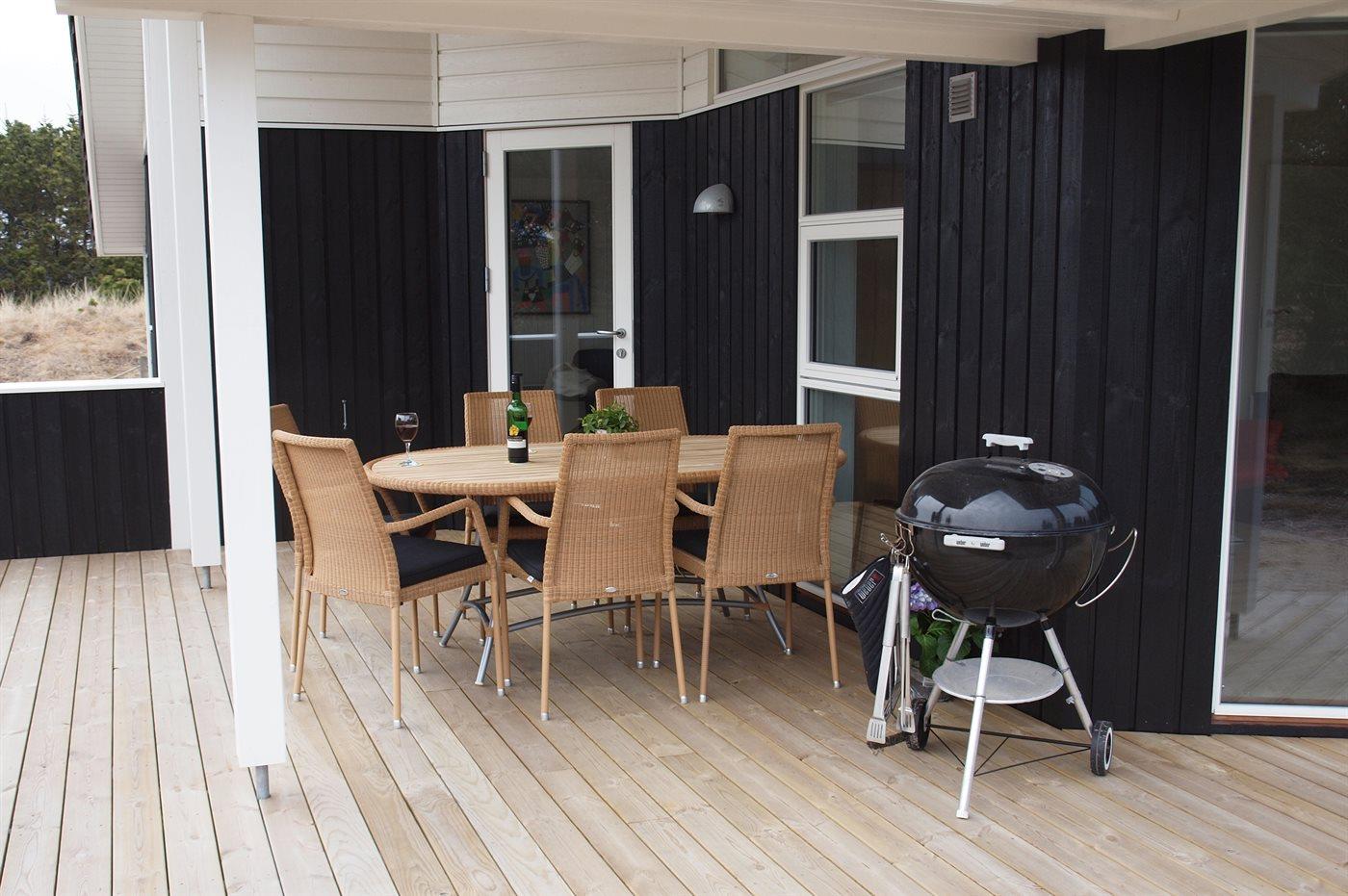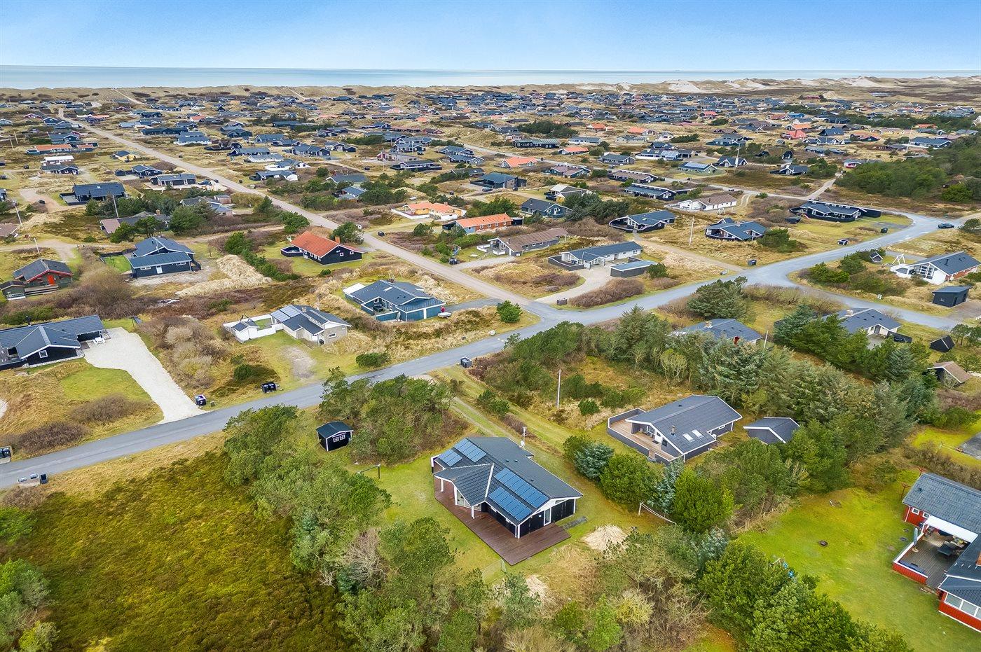 Ferieboligen er beliggende på en 1200 m² stor naturgrund. Der er 900 m til havet. Der er 500 m til fjorden. Nærmeste forretning er beliggende i en afstand af 300 m. Til ferieboligen hører 56 m² terrasseareal. Desuden er der 11 m² overdækket terrasse. Der er redskabsrum. Gynge. Fodboldmål. Grill til rådighed. Parkering ved ferieboligen.