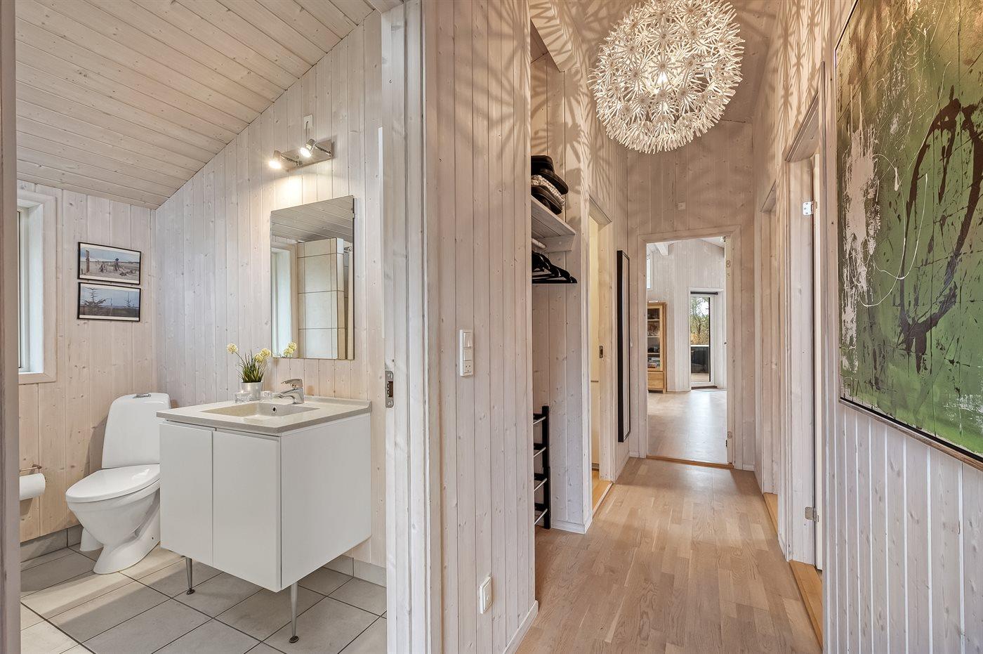 Lækkert nybygget sommerhus i træ. Huset er højisoleret med lavenergiruder og opvarmet ved hjælp af lavenergi varmepumpe og med solceller til el produktion og lavenergi belysning. Opholdsstuen har store vinduespartier mod syd. I forbindelse til spiseplads er der en alkove, et godt hygge- og legested. Sommerhuset ligger med kort afstand til stranden og indkøbsmuligheder i naturskønne og rolige omgivelser. Der er også gode cykel- og vandremuligheder i området.