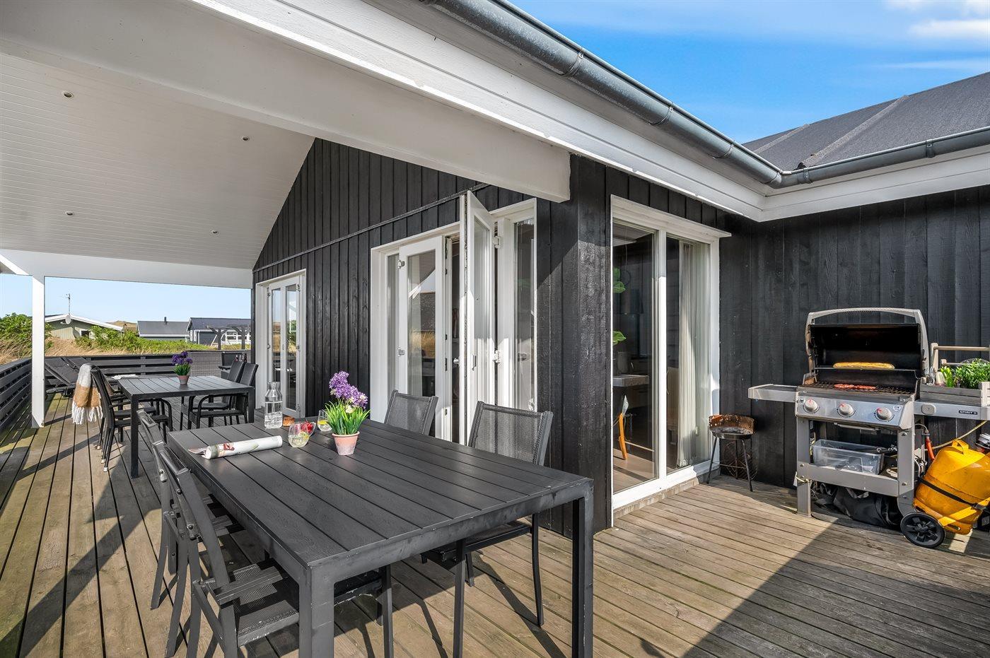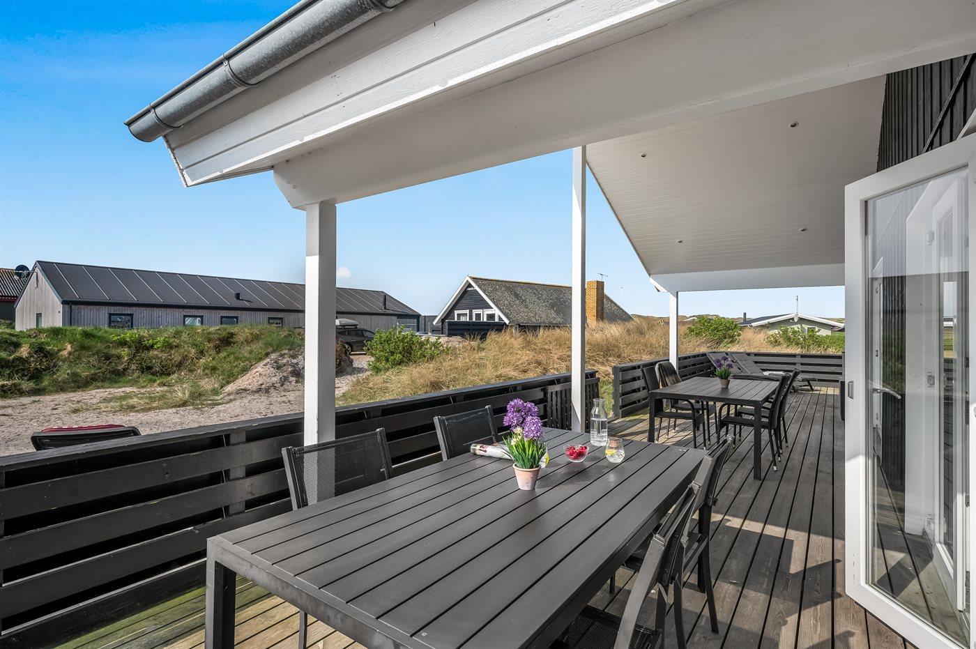 Udendørs finder du en lukket terrasse, hvor I kan nyde solen og den friske luft i fred og ro. Terrassen er også ideel til hunden, da den kan løbe og lege frit. Så hvis du leder efter et lækkert sommerhus tæt på Vesterhavet, hvor du kan tilbringe ferien, er dette sommerhus det helt perfekte valg.