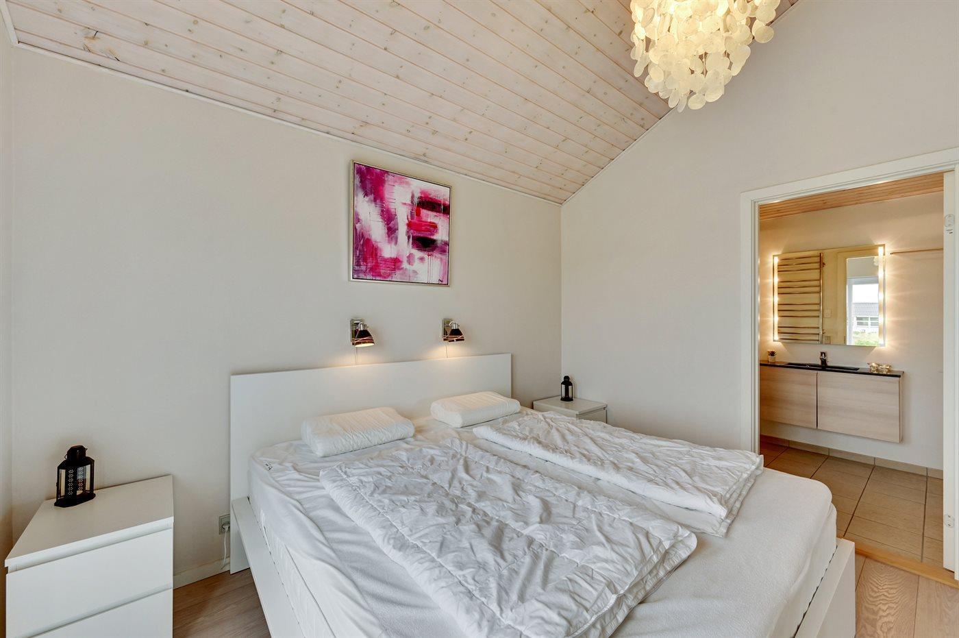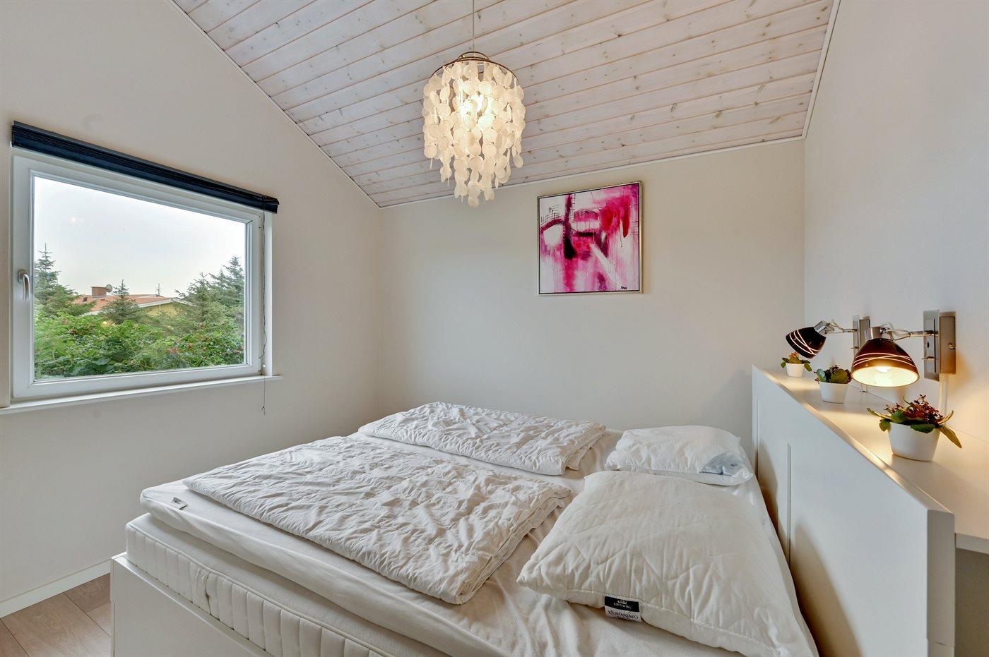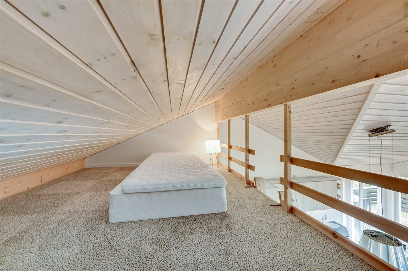 Der er i alt 3 soveværelser. Sovepladserne fordeler sig på: 4 sovepladser i dobbeltsenge. 2 sovepladser i enkeltsenge. 1 soveplads på madras. 1 af disse sovepladser befinder sig på husets hems.