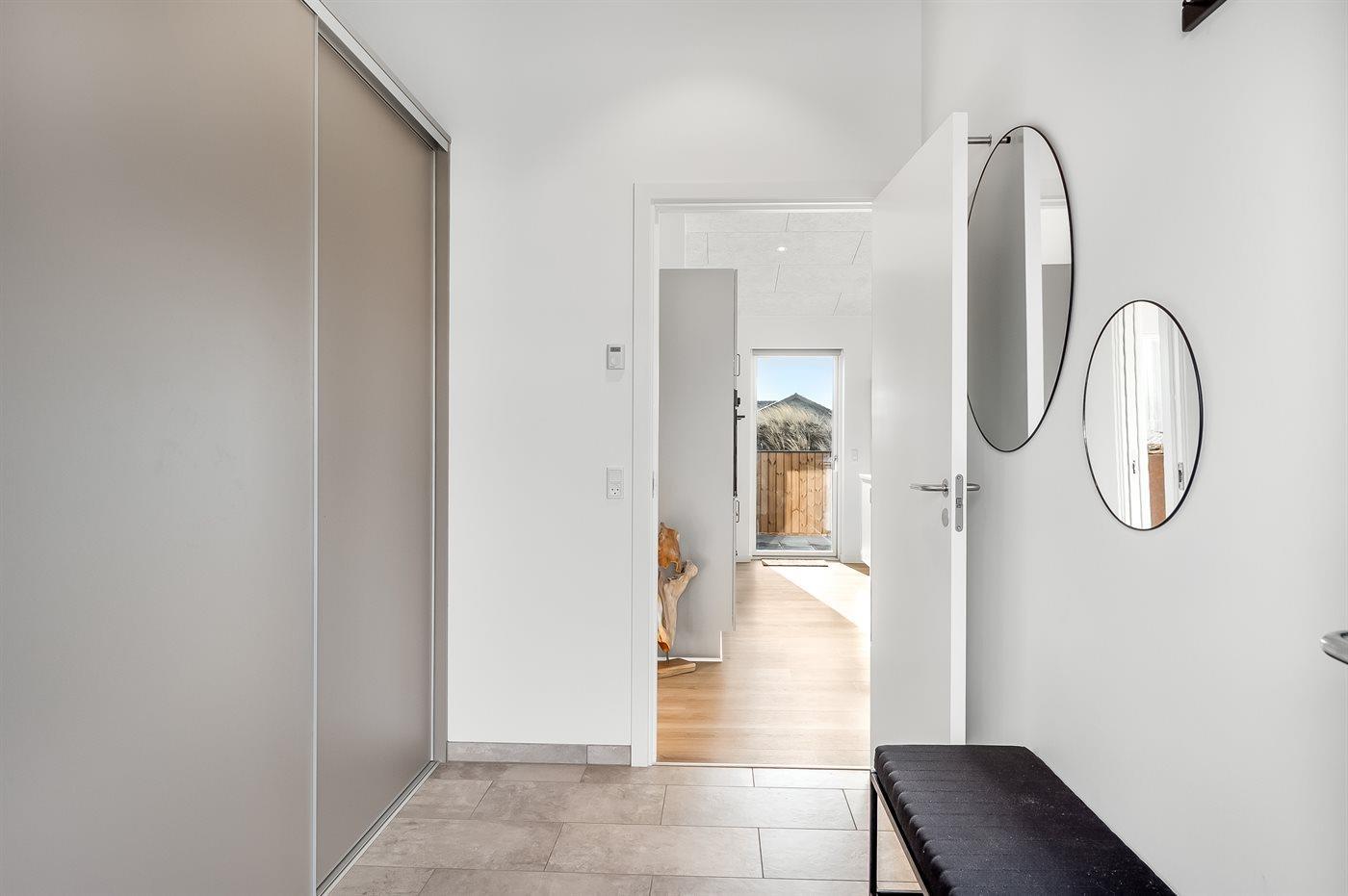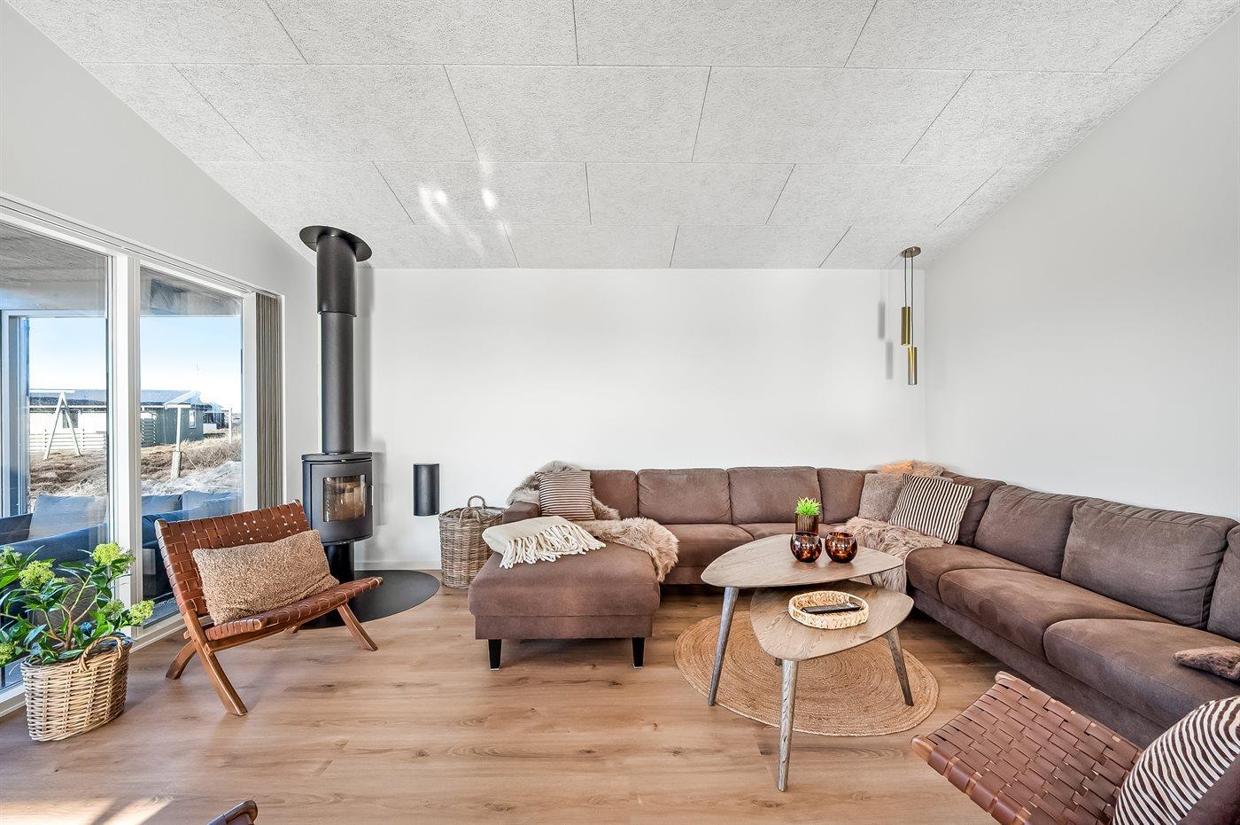 Sommerhuset ligger flot placeret i klitlandskabet, og du vil fornemme den helt specielle atmosfære, der er ved at bo i et hus nær Vesterhavet. Den hyggelige fiskerby Hvide Sande ligger en kort køretur derfra, og her kan du købe friske fisk, nyde en dejlig frokost eller gå på shopping i de små butikker. Er du mere til en aktiv ferie, er der gode muligheder for at vandre eller cykle på natur-cykelstier, der snor sig gennem klitterne og sommerhusområderne. Området er desuden meget kendt for sine gode surf-muligheder både ved Vesterhavet, men også ved Ringkøbing Fjord.