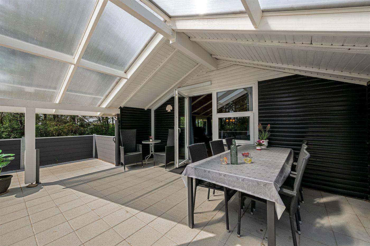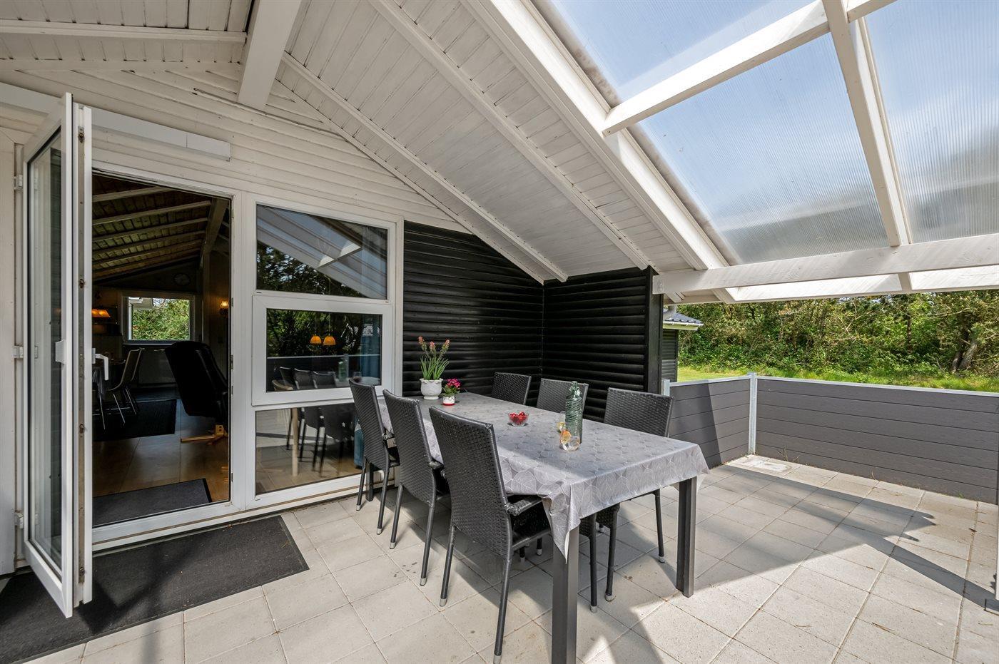 Ferieboligen er beliggende på en 1200 m² stor naturgrund. Der er 1300 m til havet. Der er 550 m til fjorden. Nærmeste forretning er beliggende i en afstand af 150 m. Til ferieboligen hører 74 m² terrasseareal. Desuden er der 5 m² overdækket terrasse. Heraf i alt 27 m² lukket terrasse. Der er redskabsrum. Gynge. Sandkasse. Parkering ved ferieboligen.