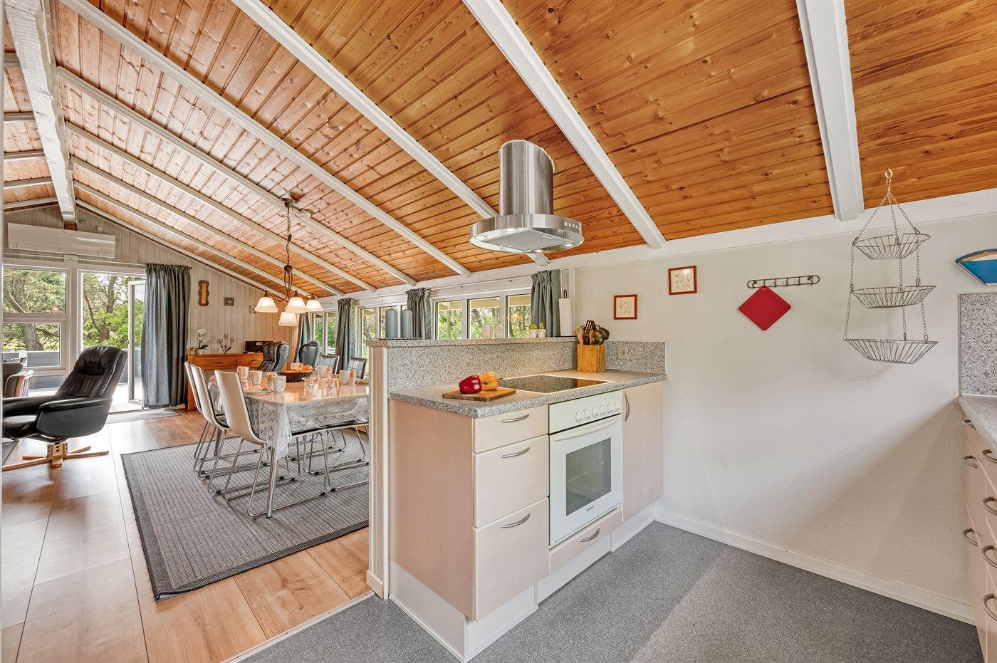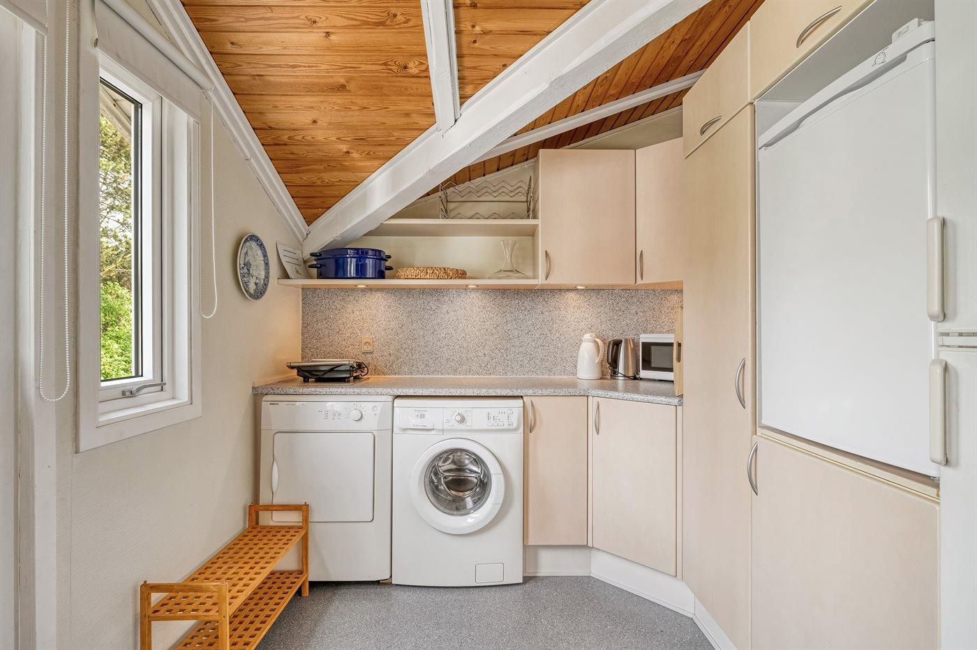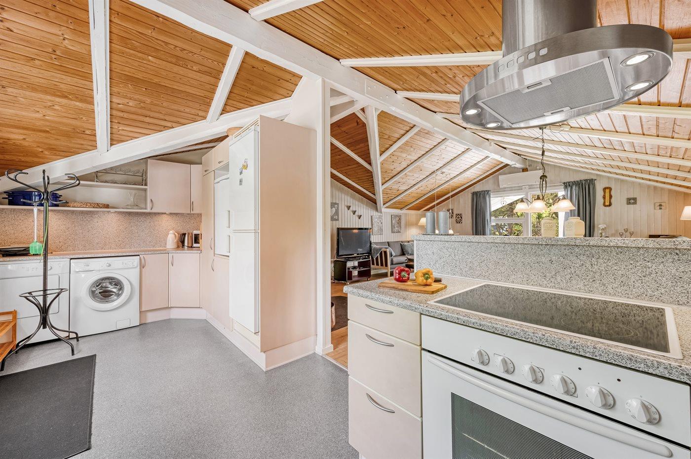 Køkkenet er udstyret med 1 køleskab. Der er 4 keramiske kogeplader, varmluftovn, mikrobølgeovn samt opvaskemaskine.