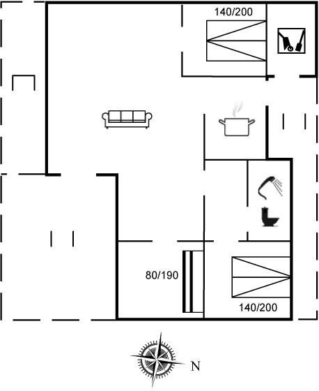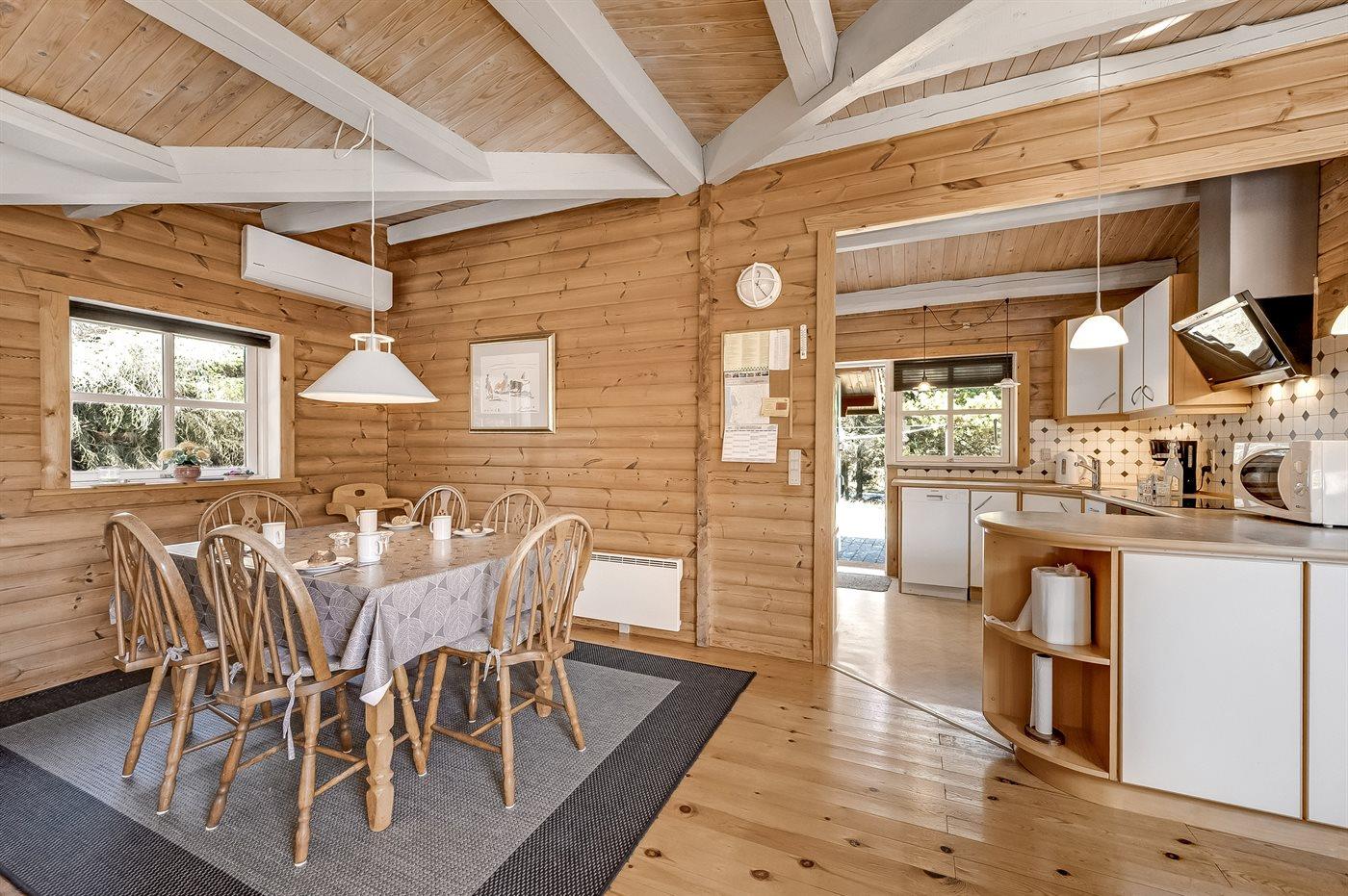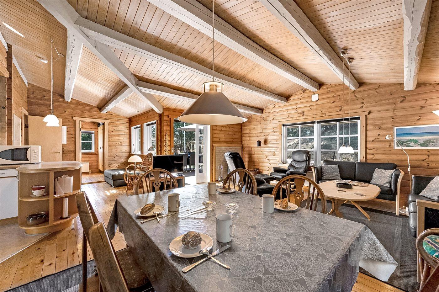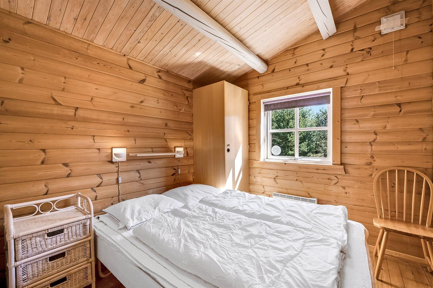Dette pæne og hyggeligt indrettede sommerhus ligger på en stor lyngklædt naturgrund, som er omgivet af træer og buske og med gode læforhold - kun få minutters gang fra den kilometerlange, sandstrand med det fineste hvide sand. Til huset hører såvel åben som overdækket terrasse med havemøbler og på grunden findes der sandkasse og gynge til de mindste feriegæster. Det rummelige køkken er kombineret med spise-opholdsstuen og bl.a. udstyret med opvaskemaskine, mikrobølgeovn, lille fryser, varmluftovn og komfur med keramiske kogeplader. I spise-/opholdsstuen, hvorfra der er direkte adgang til den åbne terrasse, finder I brændeovn, TV med parabol (digital) og stereoanlæg. Huset er indrettet med 3 soveværelser; 2 med dobbeltseng og 1 med køjeseng. Badeværelse med gulvvarme og bruseniche. Af yderligere udstyr kan gratis, trådløs internetforbindelse (computer skal medbringes), vaskemaskine, tørretumbler, barneseng samt høj barnestol nævnes og der er installeret energibesparende varmepumpe. Et dejligt sommerhus ved Vestkysten - som med sine strande, klitter og den flotte jyske natur er det perfekte udgangspunkt for gode ferieoplevelser i naturen. Den gamle købstad Ringkøbing, med de velkendte røde tage, er et besøg værd. Om aftenen kan I gå en tur sammen med "Vægterne" og indsnuse den specielle atmosfære blandt byens mange gamle huse. I bør også tage turen til Hvide Sande og se slusen, Fiskeriets Hus og den aktive fiskerihavn. Blot en times kørsel fra huset ligger Legoland og Givskud Zoo.
