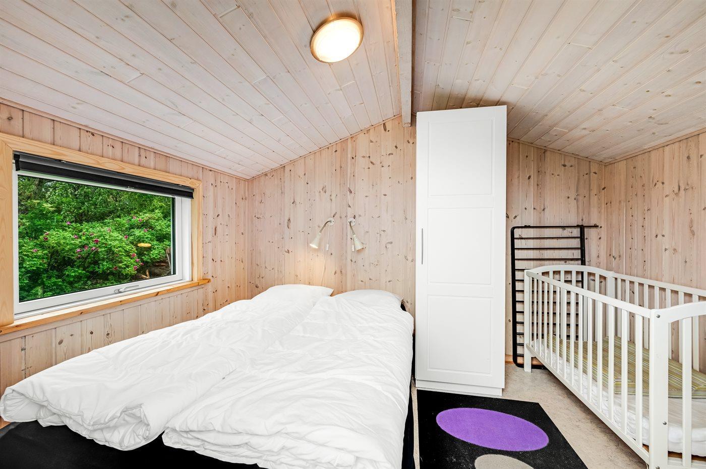 Ferieboligen er beliggende på en 1202 m² stor naturgrund. Der er 800 m til havet. Der er 500 m til fjorden. Nærmeste forretning er beliggende i en afstand af 150 m. Til ferieboligen hører 75 m² terrasseareal. Desuden er der 40 m² overdækket terrasse. Grill til rådighed. Parkering ved ferieboligen.