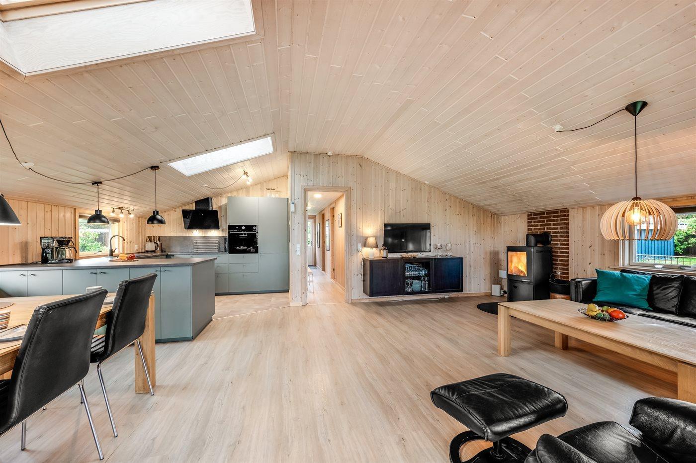 Et dejligt sommerhus med god plads og skønne lysindfald fra flere ovenlysvinduer - beliggende i rolige og naturskønne omgivelser mellem hav og fjord. På den lukkede grund er der plads til boldspil og leg samt adgang til et fint anneks, hvor 2 af sovepladserne befinder sig.