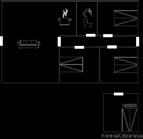 Der er i alt 4 soveværelser. Sovepladserne fordeler sig på: 6 sovepladser i dobbeltsenge.2 sovepladser i elevationssenge. 2 af disse sovepladser befinder sig i et anneks. Derudover er der 1 stk. barneseng.