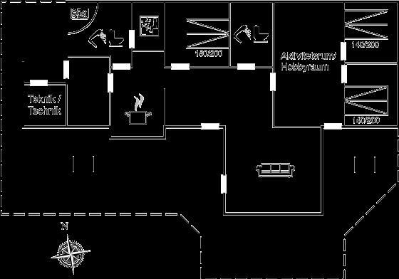 Der er 2 badeværelser med bruseniche og 2 toiletter. Der er gulvvarme på 2 badeværelser. I saunaen er der mulighed for afslapning.