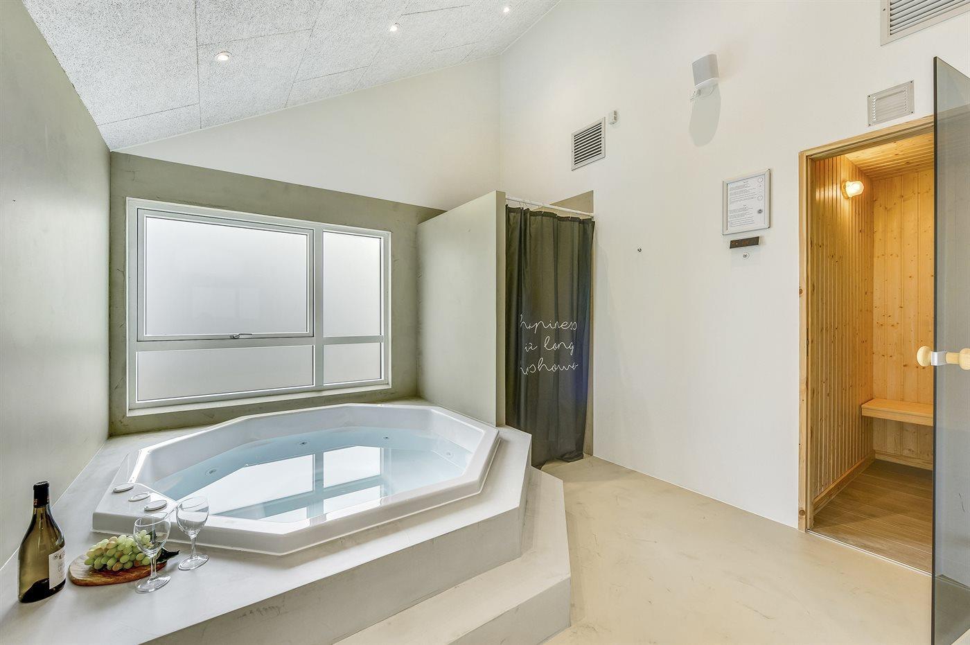 I den indendørs standvandsspa er der plads til 4 personer.
