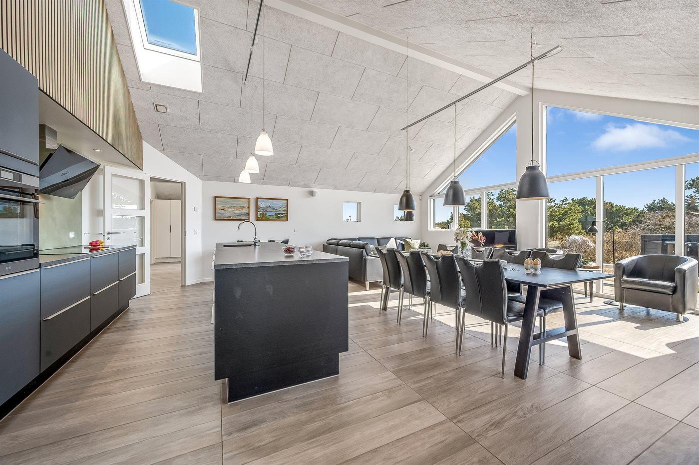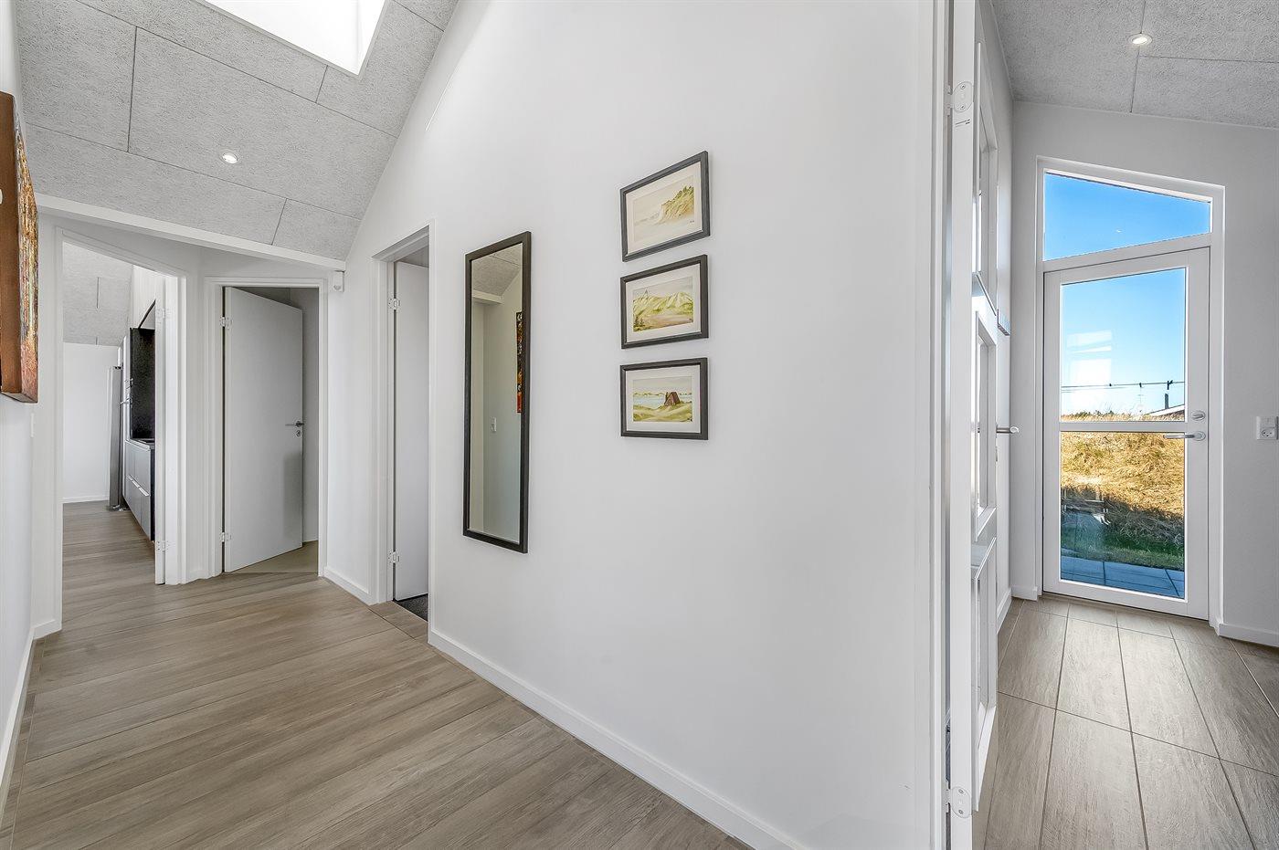 Et flot, nybygget (2021) aktivitetshus med en central beliggenhed i Bjerregaard. Her kan man nemt finde hyggen frem samtidig med, at man kan nyde den luksus, som kun et nybygget sommerhus kan byde på. Huset ligger nær Vesterhavet og man fornemmer den helt specielle atmosfære, der er ved at bo i et hus nær kysten. Er man til den aktive ferie er der gode muligheder for at vandre eller cykle på naturstien, der snor sig gennem klitterne og sommerhusområderne helt fra Bjerregård til Søndervig.