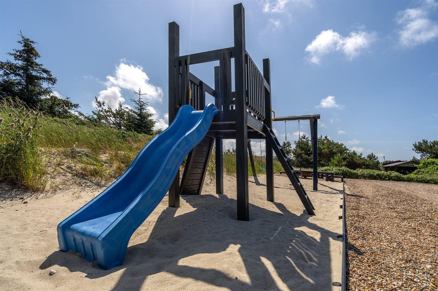 Ferieboligen er beliggende på en 1462 m² stor naturgrund. Der er 700 m til havet. Der er 975 m til fjorden. Nærmeste forretning er beliggende i en afstand af 650 m. Til ferieboligen hører 180 m² terrasseareal. Desuden er der 18 m² overdækket terrasse. Der er redskabsrum. Gynge. Sandkasse. Legetårn. Rutchebane. Bålsted. Der er installeret stik til opladning af elbil. Parkering ved ferieboligen.