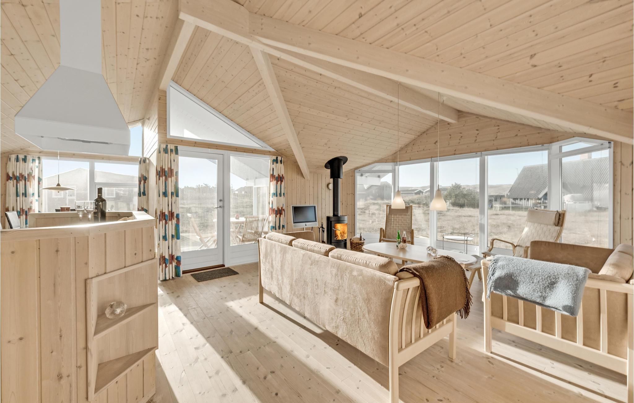Glæd jer til et helt enestående ophold på Holmsland Klit i Vestjylland, hvor I bor i fantastiske omgivelser - fjorden på den ene side og det store, brusende Vesterhav 150 meter fra hoveddøren. Selve huset har en lys og rar atmosfære med vidunderlig udsigt til naturen, så her kan I også nemt få tiden til at gå, mens I holder ferie. Området lægger desuden op til et væld af muligheder, lige fra cykeludflugter til strandture eller kulturoplevelser.