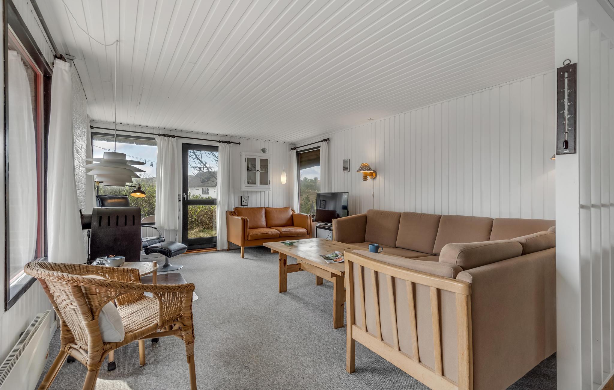 Der er lagt op til nogle forrygende feriedage for hele familien i dette rolige sommerhuskvarter nord for Bjerregård, hvor I kan få jeres base i et helt særligt hus. Her kommer I helt ned i tempo og glemmer hurtigt alt om hverdagens hektiske program. Huset fremviser en lang række stiltræk fra huset oprindelse, som er flot vedligeholdt og kombineret med moderne detaljer, som smelter sammen på bedste vis. Efter en lang dag på farten er det skønt at vende tilbage til denne lille oase, hvor I kan give jer god tid til madlavningen i det veludstyrede køkken eller læne jer tilbage i stuen med ild i brændeovnen. Sæt jer med et brætspil rundt om køkkenbordet og nyd udsigten til klitlandskabet udenfor. Rundt om huset er der flere gode solkroge, hvor man kan sætte sig med en bog på en sommerdag eller samles til den store grillmiddag, når dagen går på hæld.