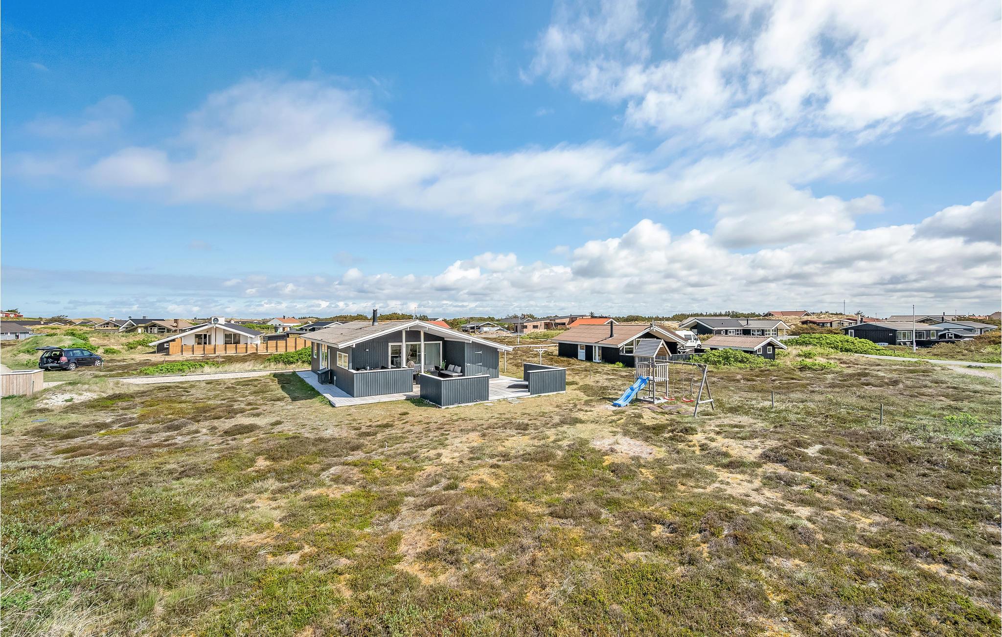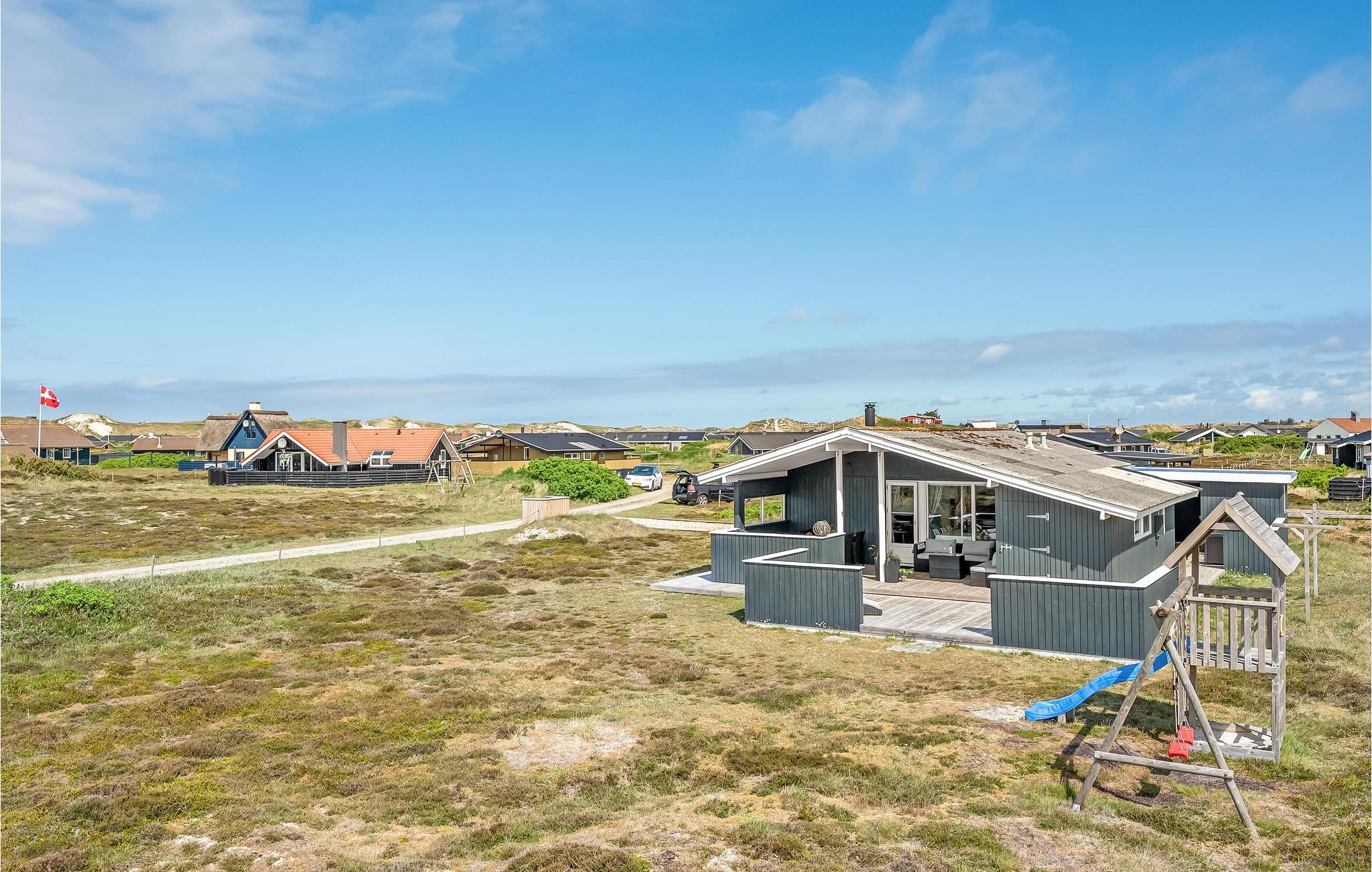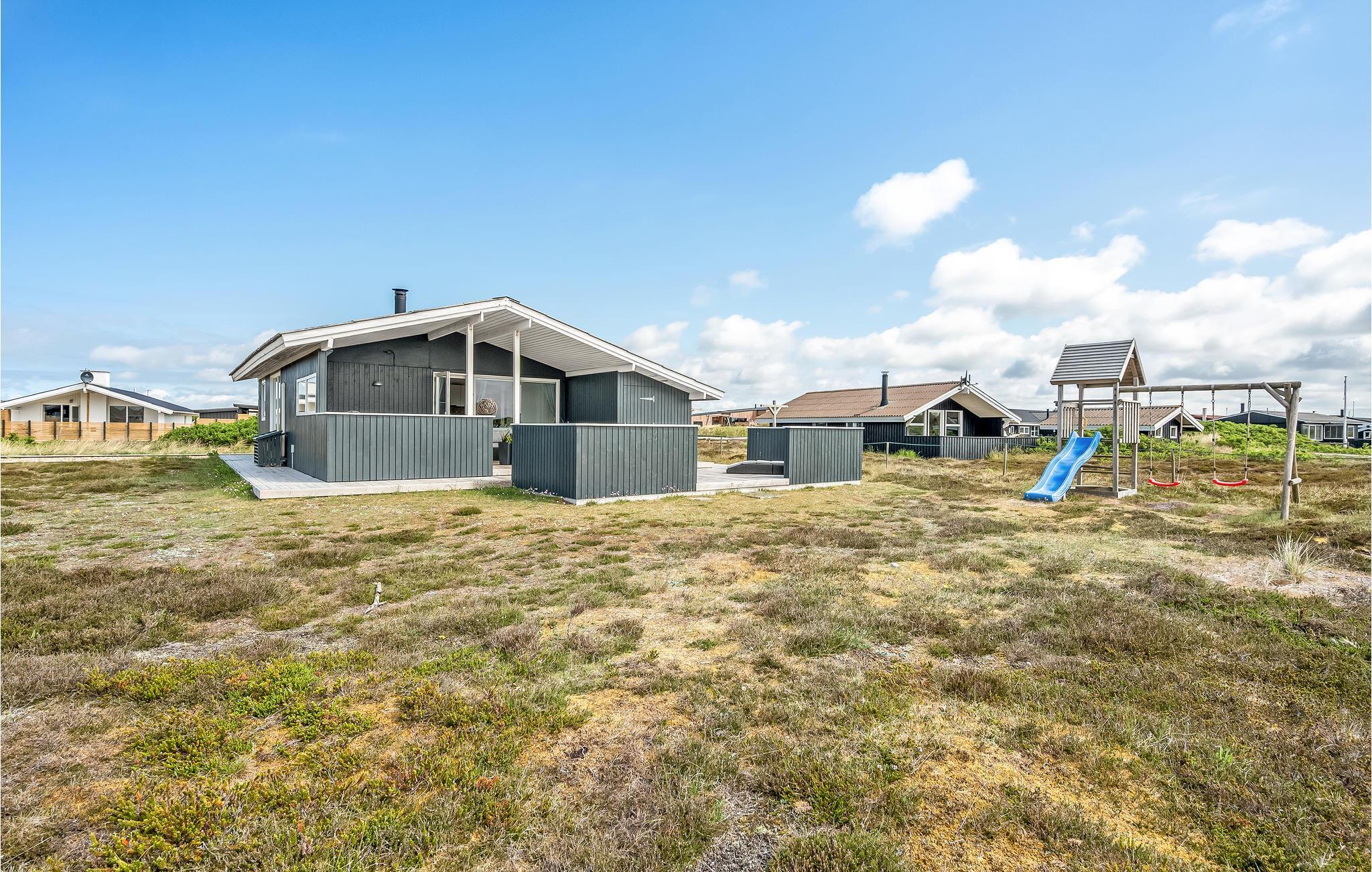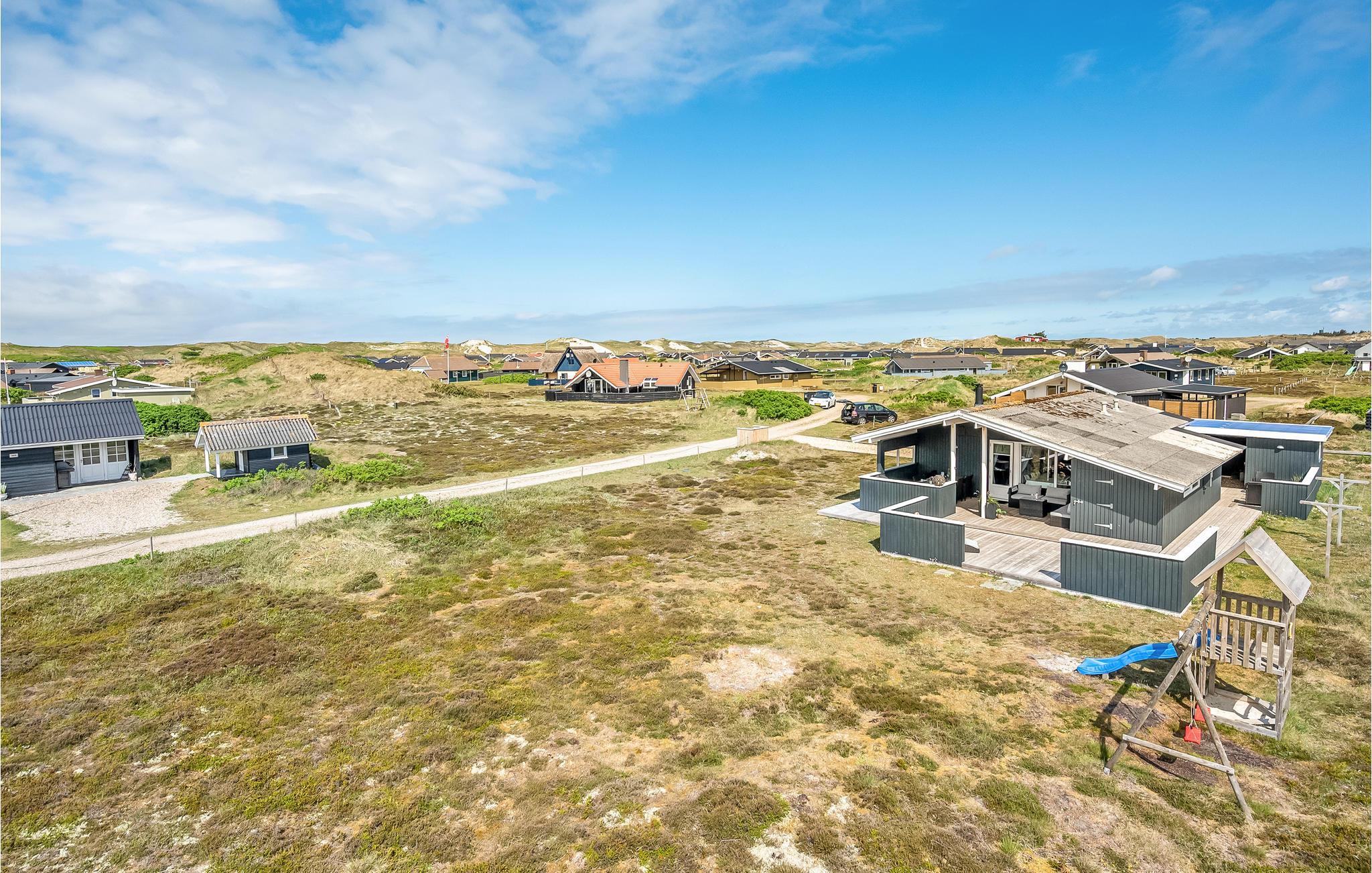 Moderne sommerhus ved Vesterhavet med sauna, terrasse og børnevenlig have tæt på stranden.