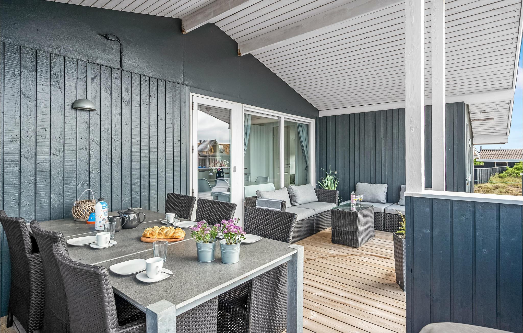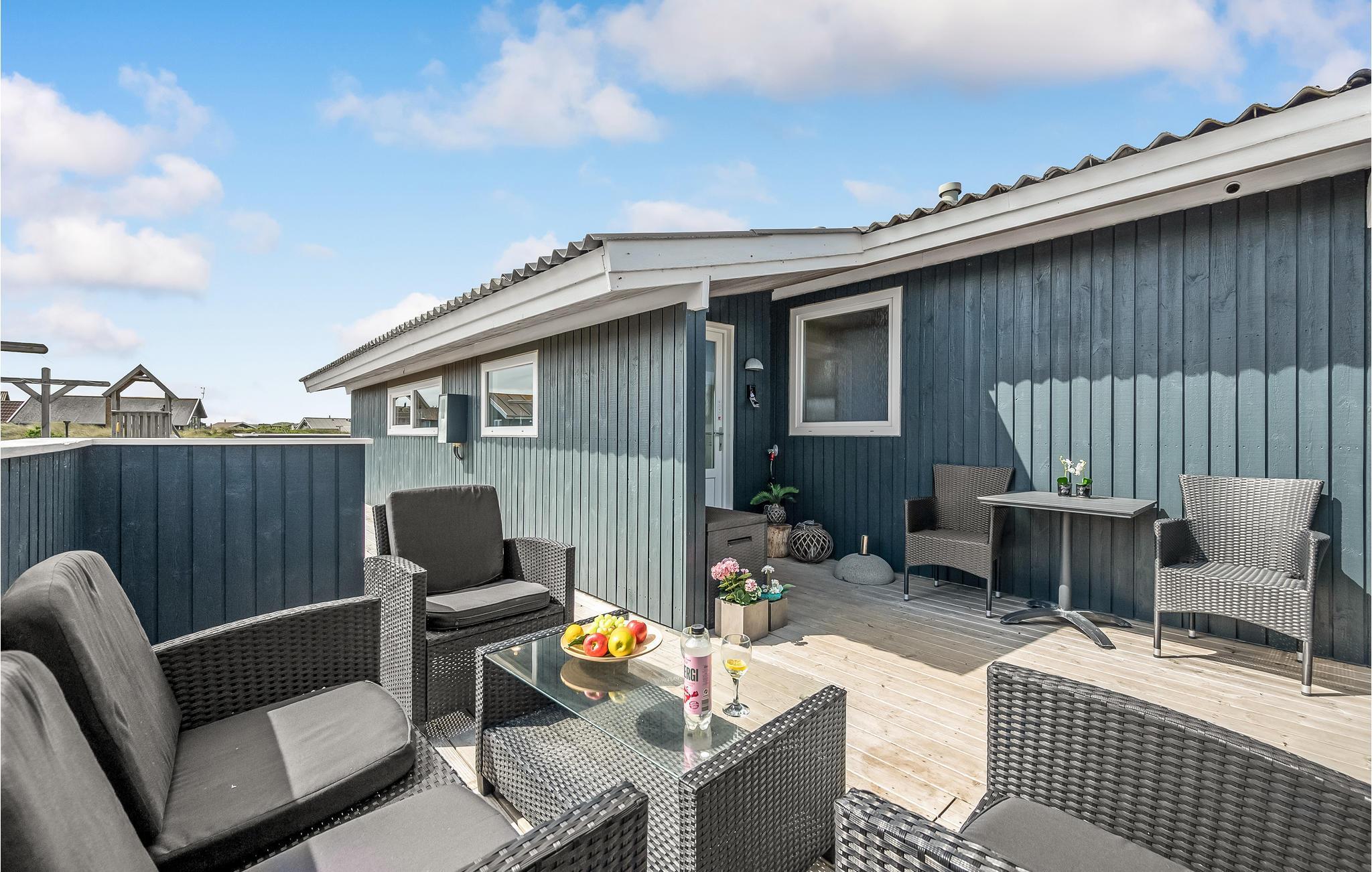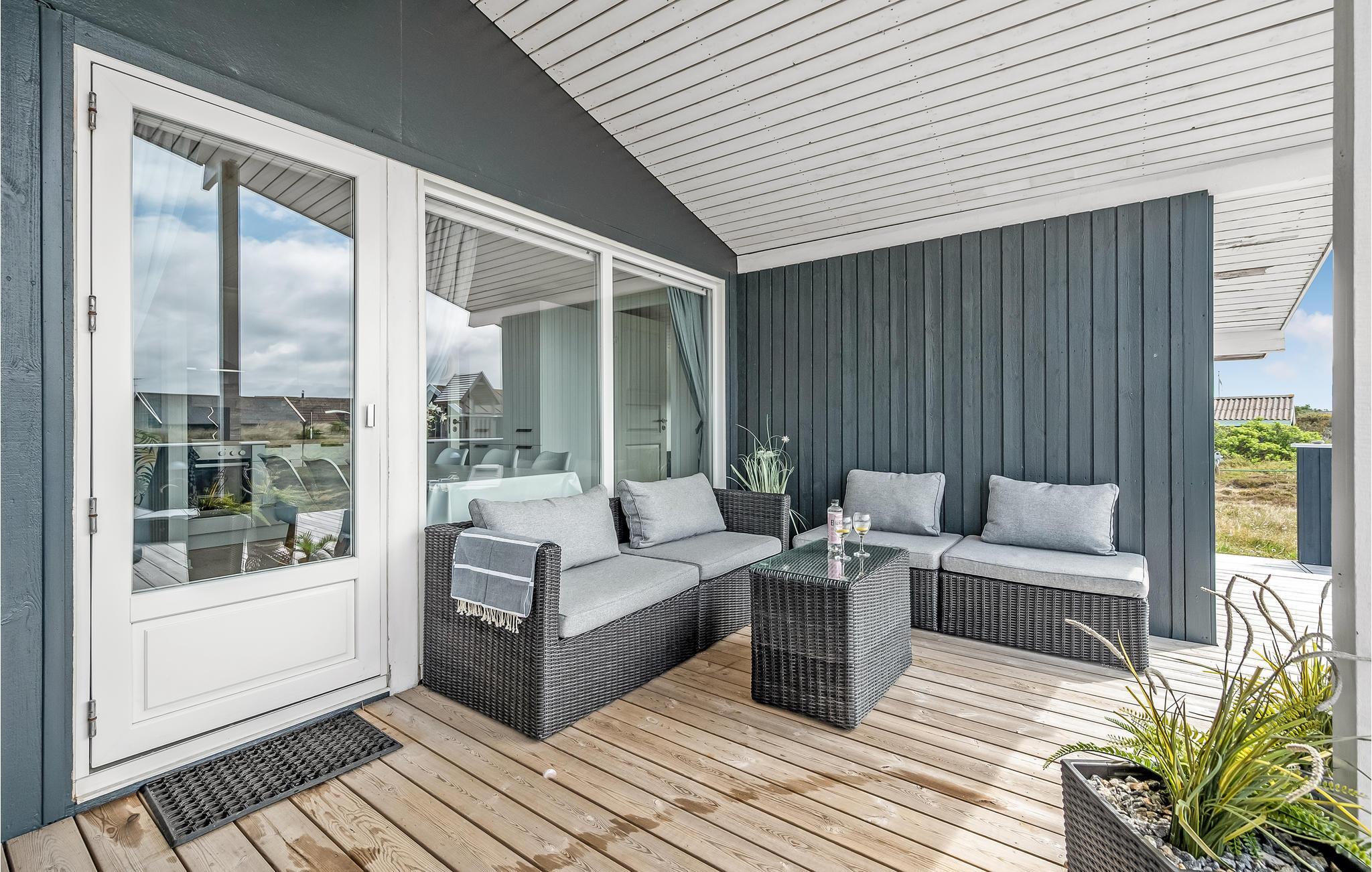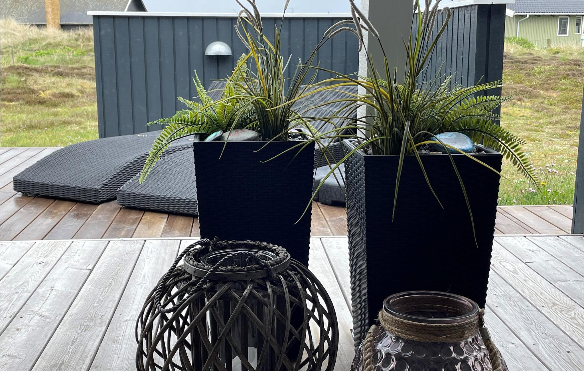 Lyst, moderne og charmerende indrettet sommerhus, der ligger på en naturgrund på landtangen mellem Ringkøbing Fjord og det brusende Vesterhav. Med kun få hundrede meter til stranden er dette hus ideelt for familien eller par, der ønsker at være midt i naturen, her kan havets brusen høres. Når I ankommer til huset, er det første, der møder jer, den lille skønne østvendte terrasse, ved husets indgang, hvor morgensolen kan nydes ved det lille cafébord og i loungemøblerne.