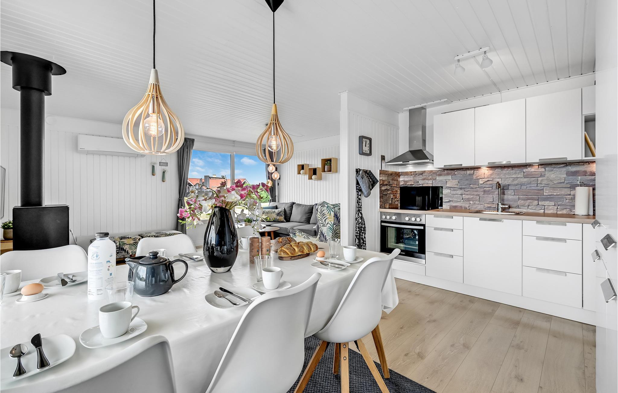Huset, som er gennemgribende renoveret i 2018, indeholder et flot køkken, en hyggelig indrettet stue med brændeovn og direkte udgang til terrassen. Fra stuens sofa er der en flot udsigt over klitterne, hvor også solnedgangen kan nydes, hvis I da ikke går til havet. Der er 3 skønne soveværelser og badeværelse med sauna. Husets hjerte er den delvis overdækkede, sydvendte terrasse, hvor der en fin udsigt til klitterne. Der er en dejlig spiseplads, hvor maden fra Weber Performer kuglegrillen kan nydes samt en hyggelig loungeafdeling, som indbyder til afslappende samværd, mens børnene kan hygge sig på det lille legetårn med rutsjebane, gynger og sandkasse med skygge. Et helt igennem skønt sommerhus i flotte naturomgivelser.