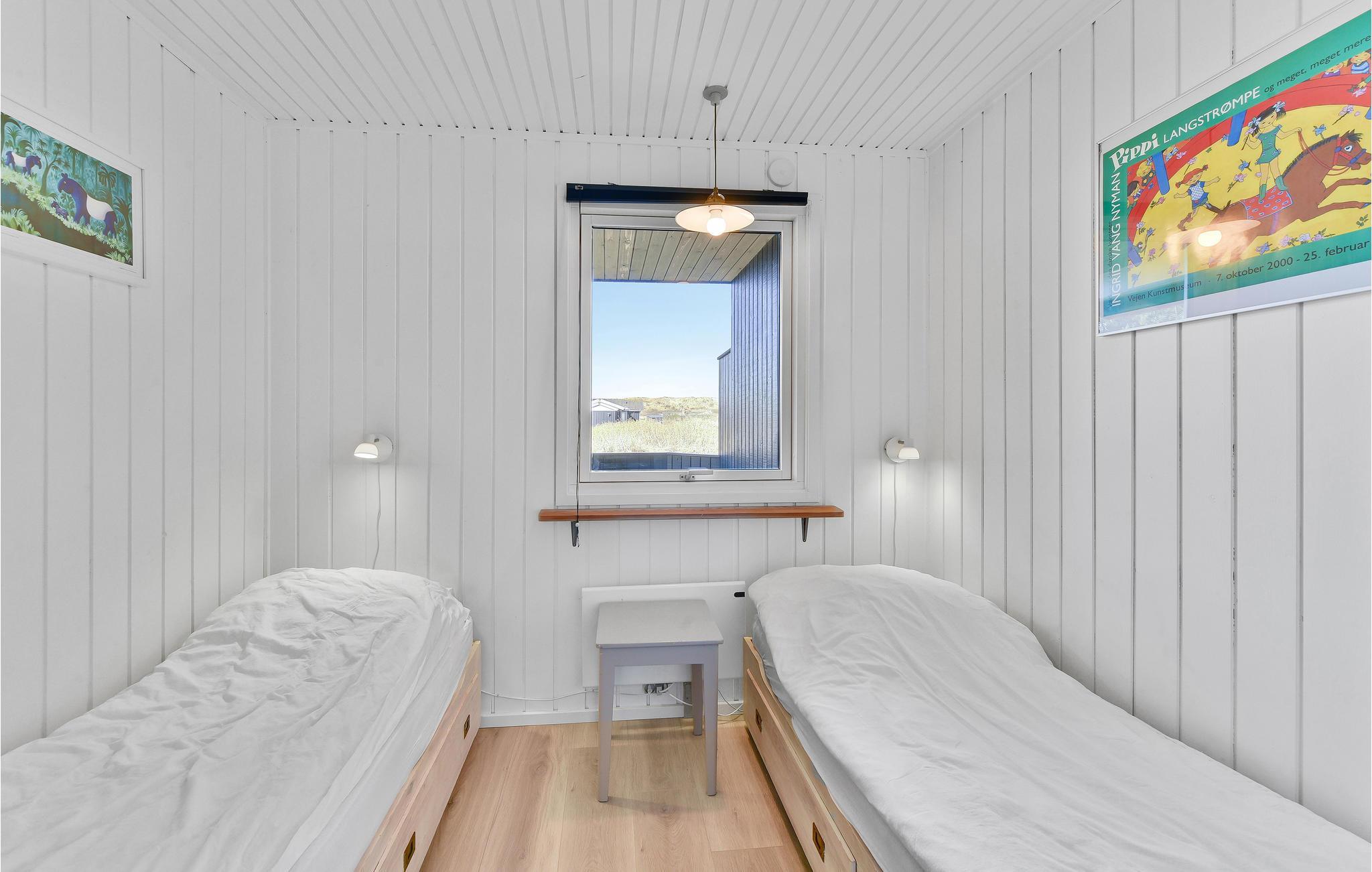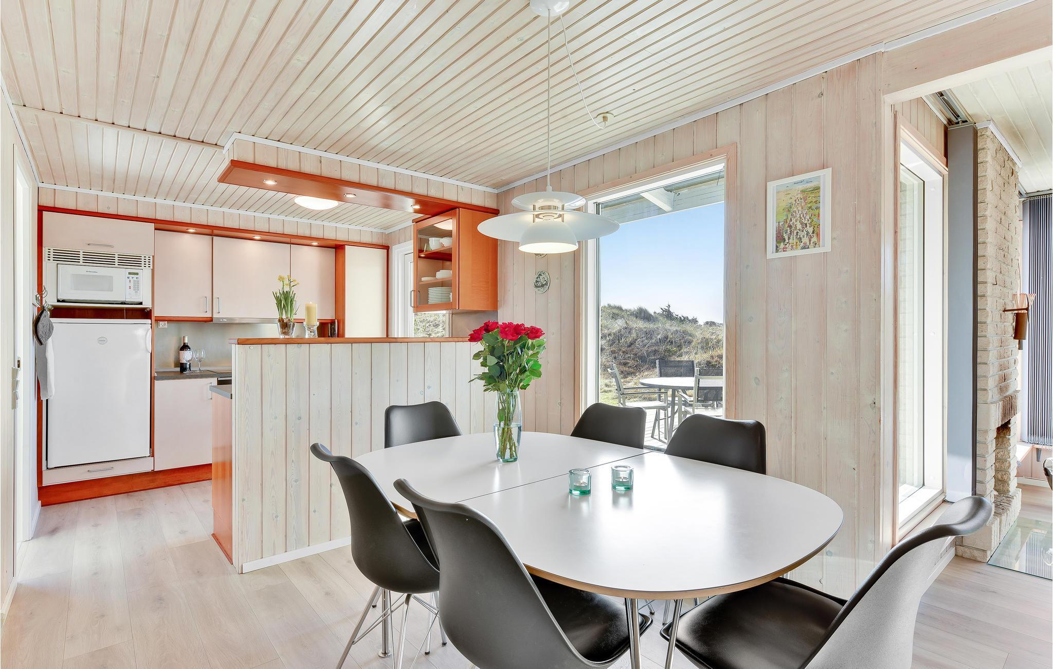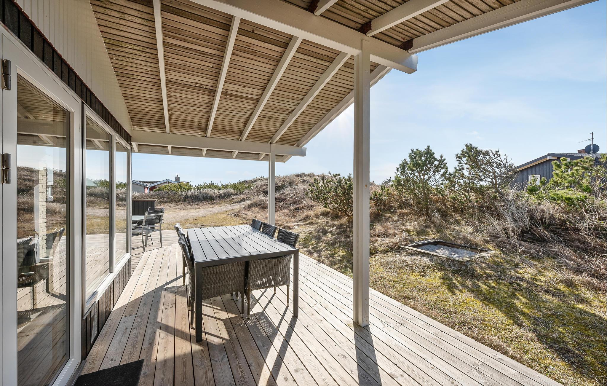 Et hyggeligt feriehus kun 350 m fra det skønne Vesterhav med brede sandstrande, masser af frisk luft og højt til loftet. Nyd en skøn ferie i dette fine feriehus, som løbende moderniseres og vedligeholdes. Beliggenheden er dejlig uforstyrret, og ved huset findes en dejlig stor terrasse og god plads til udendørs liv. Indendørs har huset en dejlig indretning med køkken, spisestue og stue i forlængelse af hinanden. I stuen kan I tænde op i pejsen, og nyde varmen og ildens hyggelige knitren. Desuden tre gode soveværelser og et stort badeværelse med sauna og spabad.