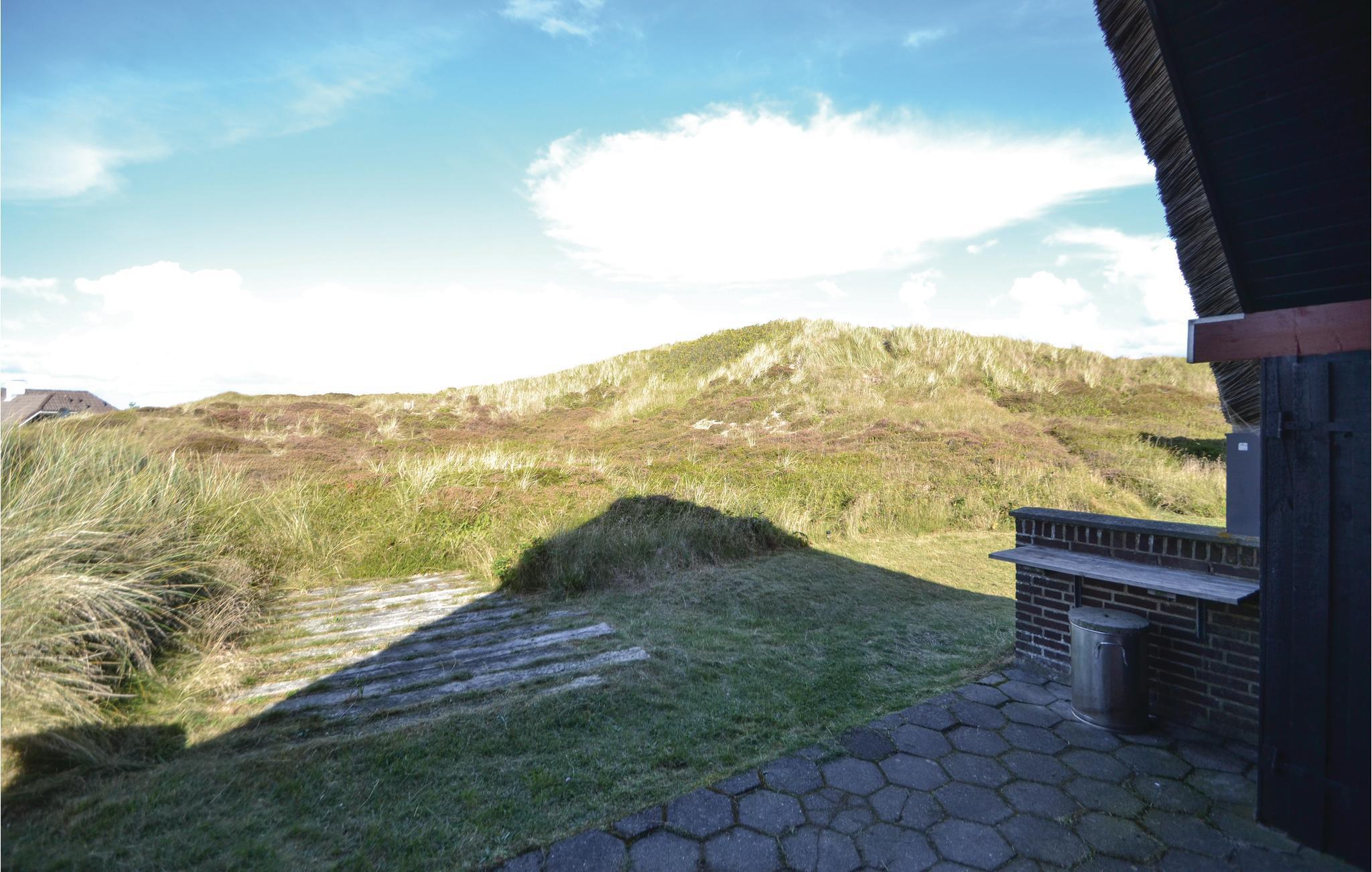 Hyggeligt stråtækt sommerhus i Bjerregård nær Vesterhavet og Ringkøbing Fjord med terrasse og naturskøn beliggenhed.