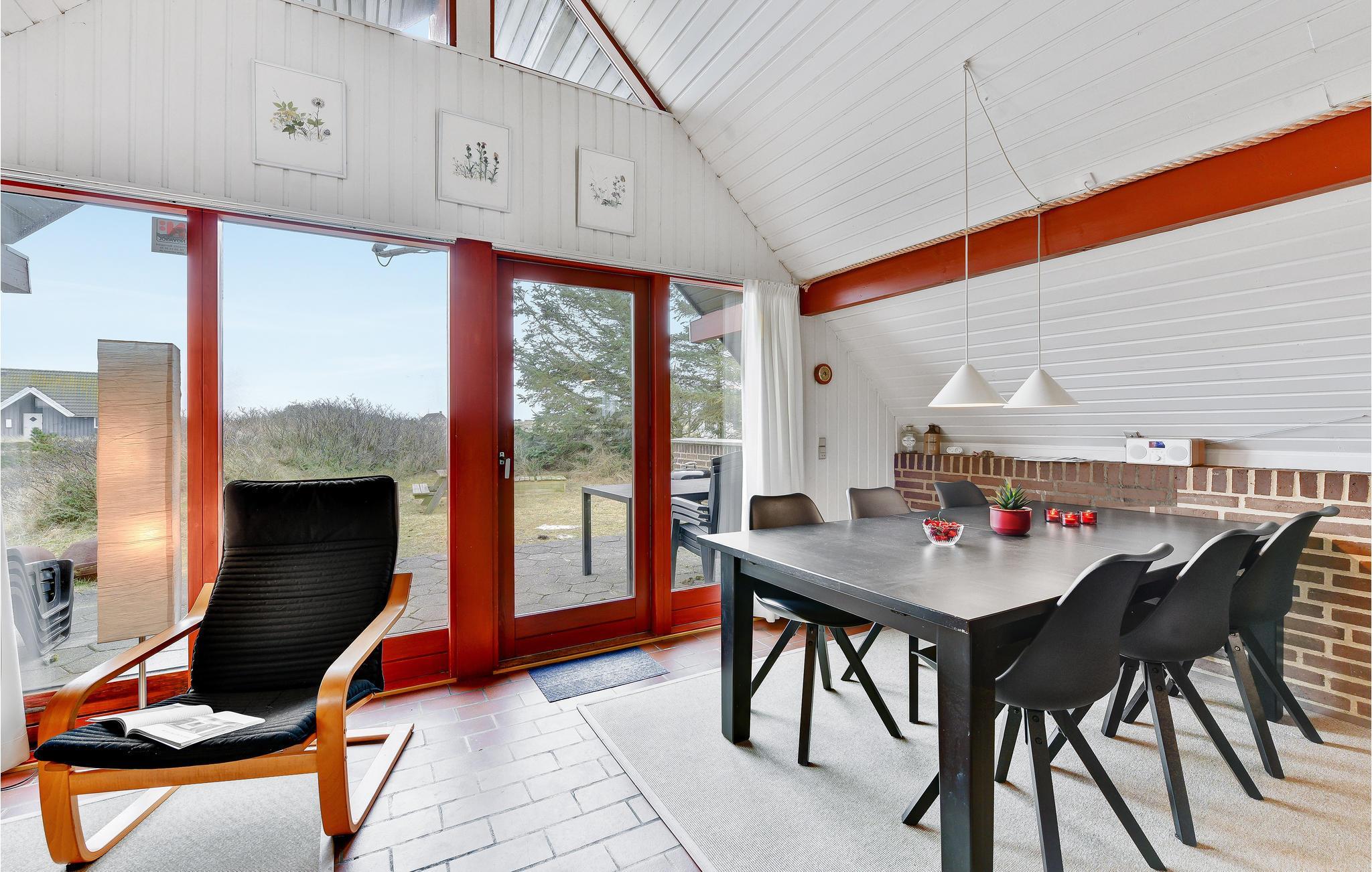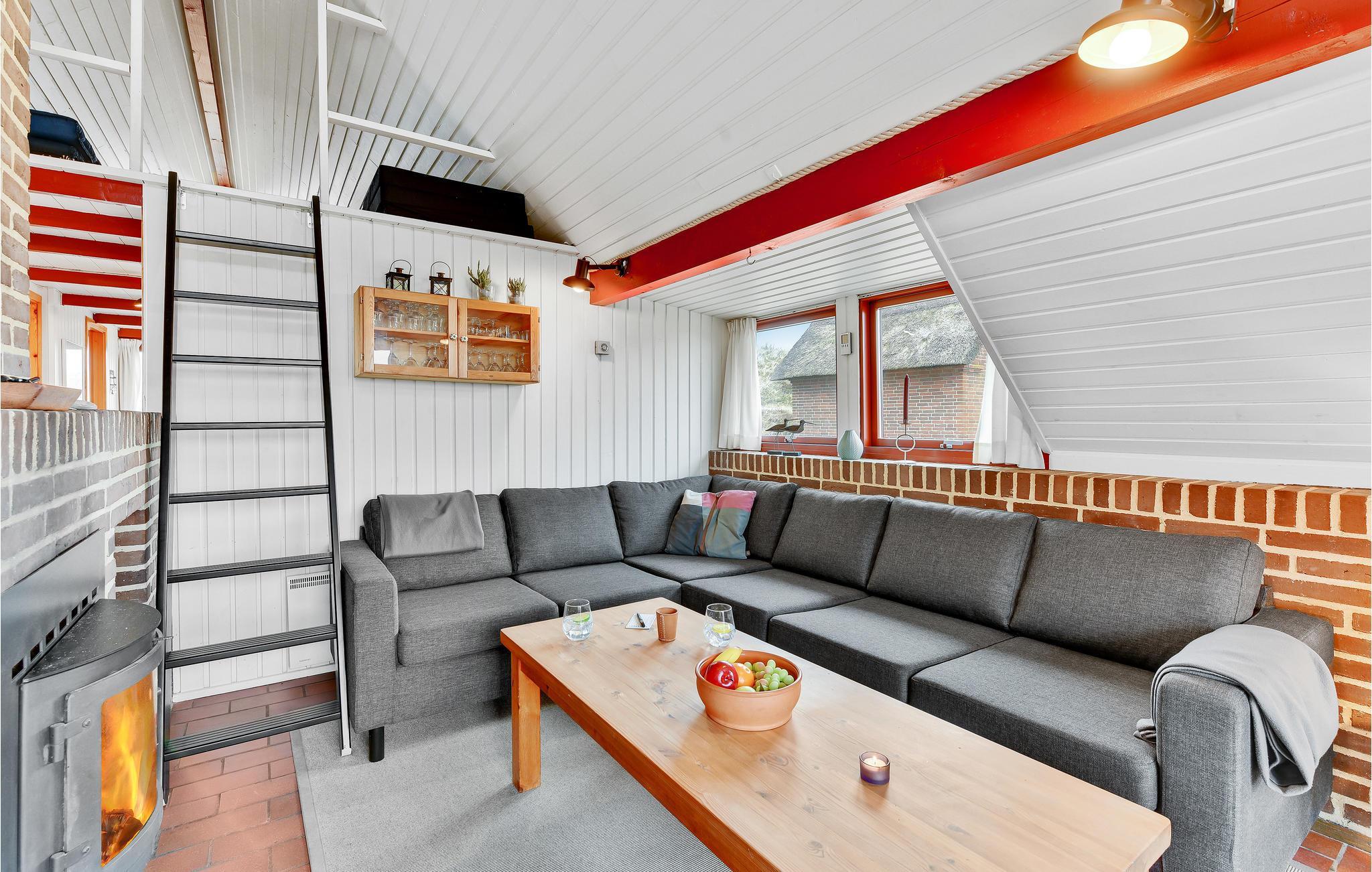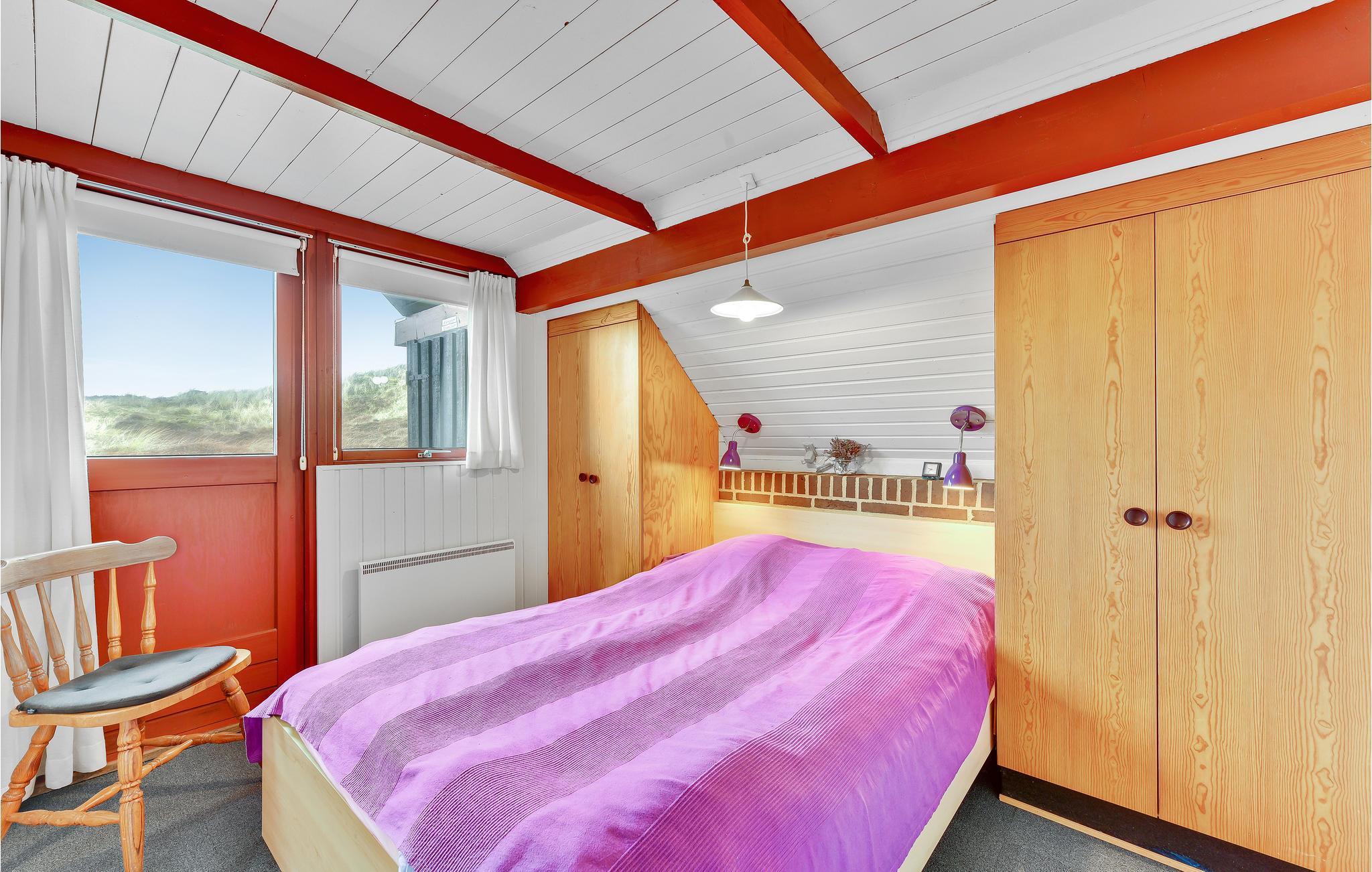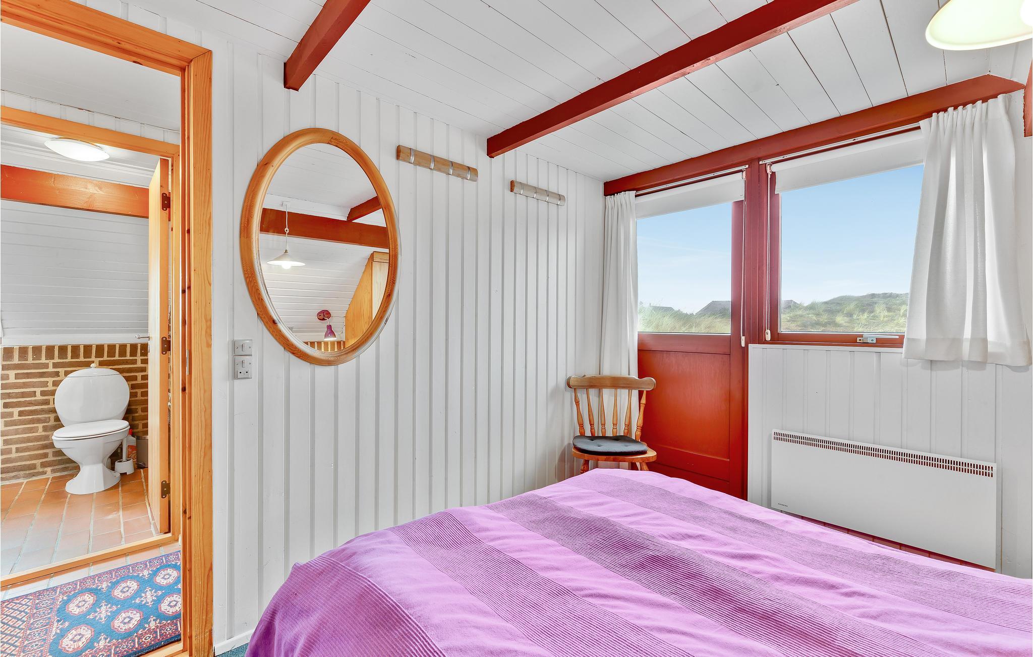 Der er en skøn og hyggelig atmosfære i dette stråtækte sommerhus beliggende på en dejlig naturgrund i Bjerregård. Her, lige midt i mellem Ringkøbing Fjord og Vesterhavet, mærkes for alvor vindens sus og bølgernes brus. Nyd naturen direkte fra en af husets to terrasser, eller tag på opdagelse i det skønne klitlandskab. Der er vandre- og cykelruter i området, som går hele vejen fra Nymindegab i syd til Søndervig i nord. Huset er hyggeligt indrettet med køkken og stuen i åben forbindelse med hinanden, og danner rammen om husets samlingspunkt. Der er et dejligt lysindfald fra det store vinduesparti, direkte udgang til terrassen, og brændeovnen der skaber den rette sommerhusstemning. De seks sovepladser er fordelt i tre værelser; et med dobbeltseng og to mindre soveværelser med køjesenge og sovesofa. Nærmeste by er Hvide Sande, som byder på et spændende handelsliv, med mange forskellige butikker, caféer og restauranter, museer og ikke mindst det skønne havnemiljø.