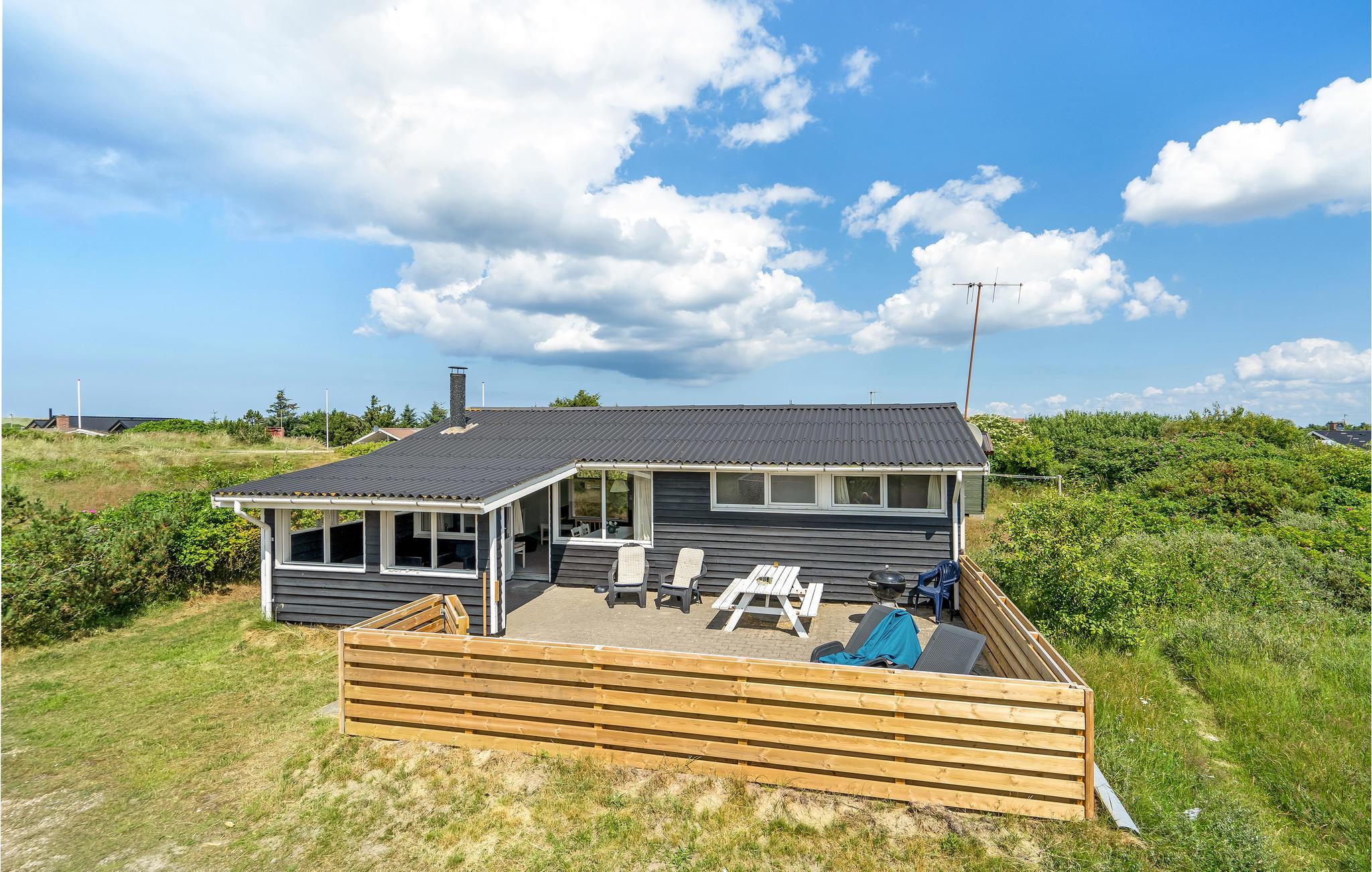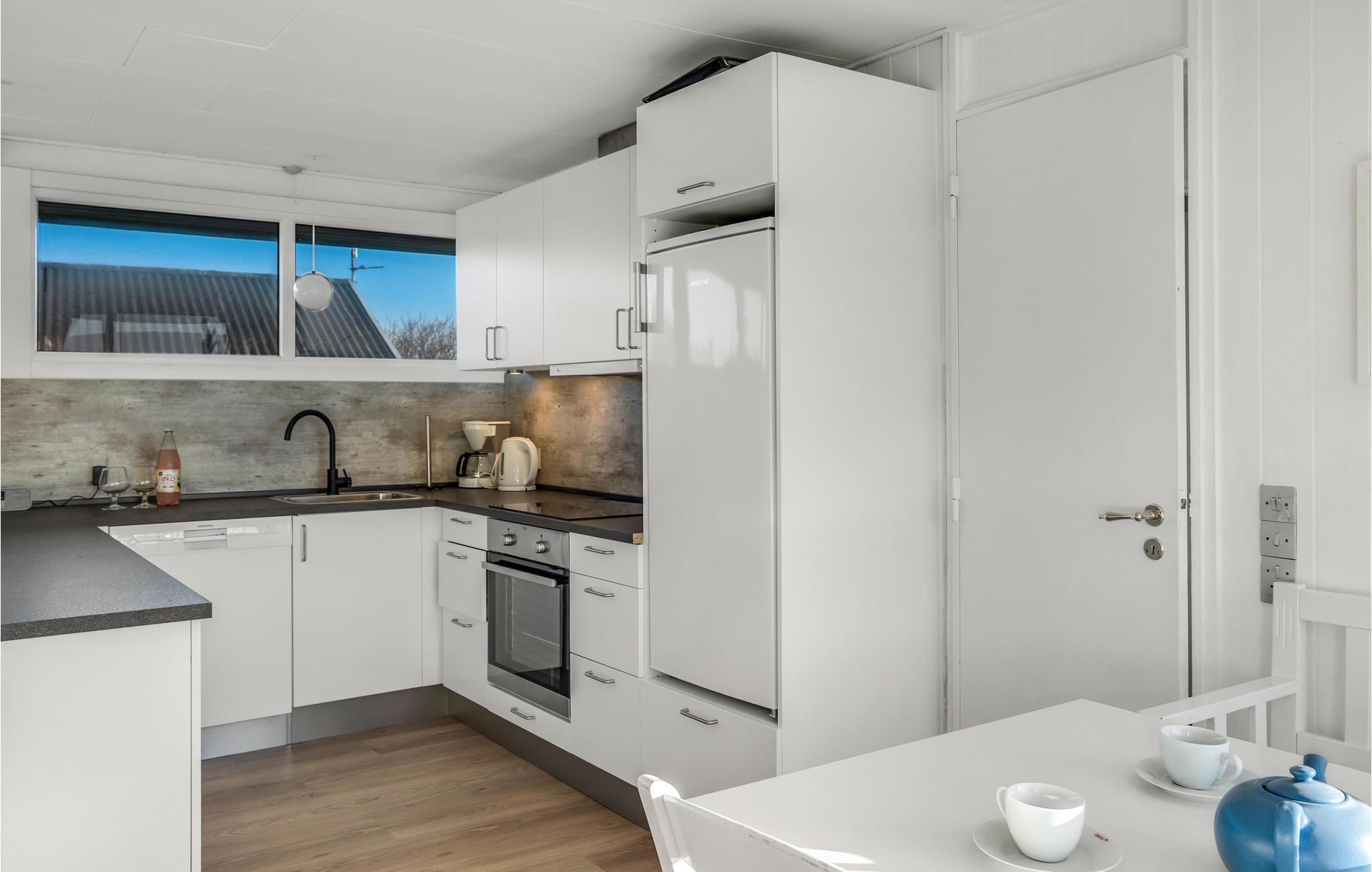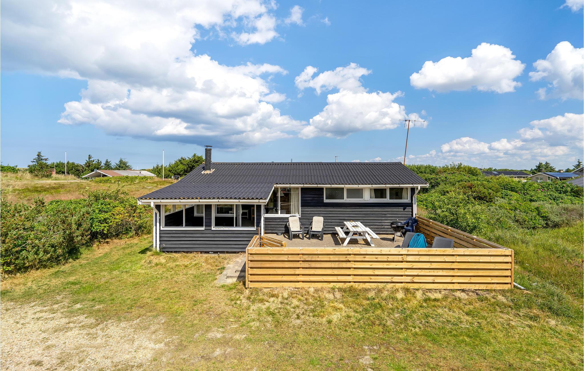 Hyggeligt feriehus i Bjerregård med moderne køkken, terrasse og tæt på stranden ved Vesterhavet.