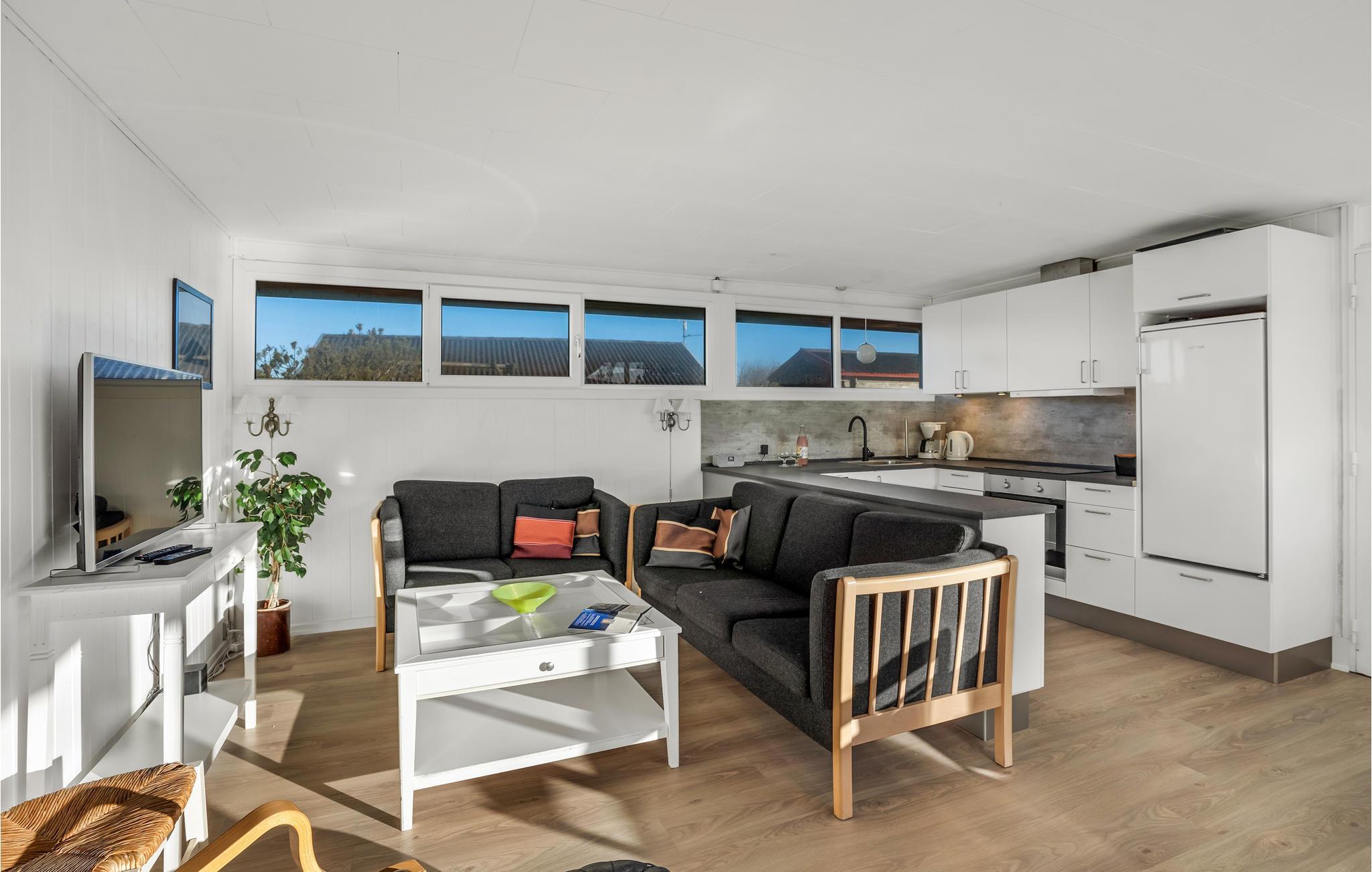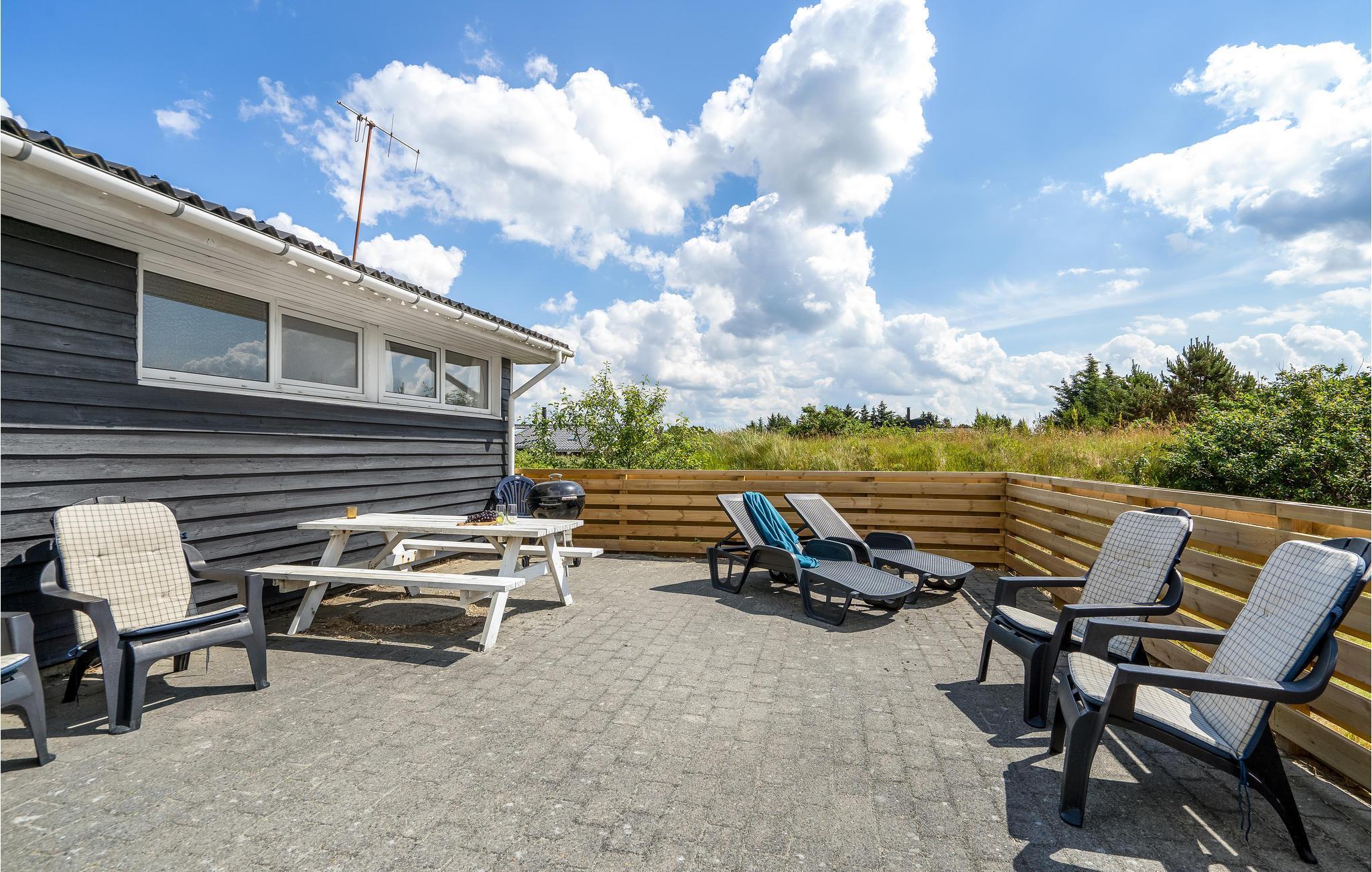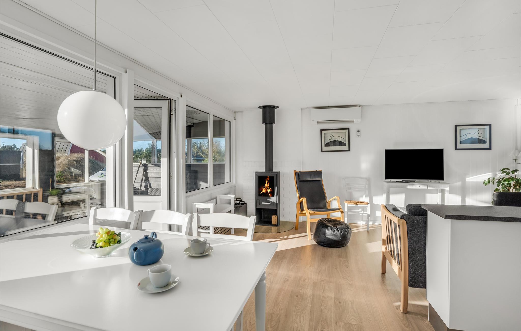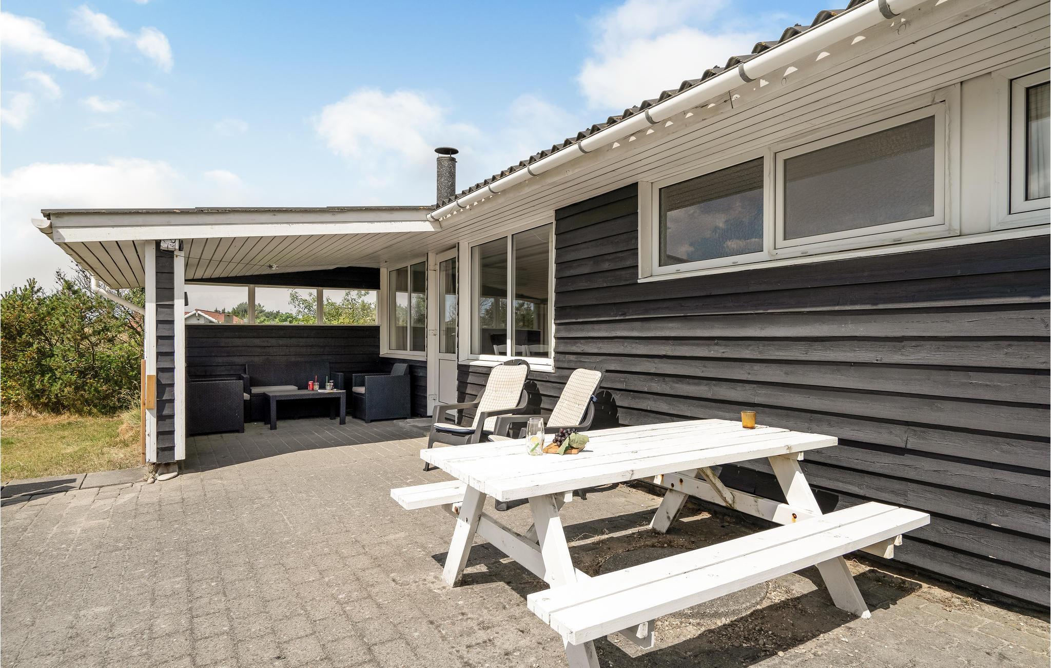 Hyggeligt feriehus i Bjerregård med moderne køkken, terrasse og tæt på stranden ved Vesterhavet.