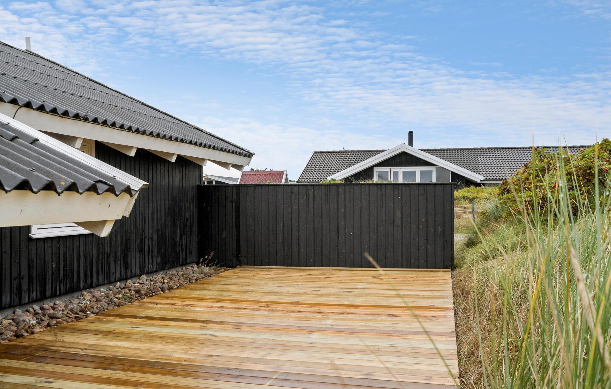 Huset ligger på en skøn grund ud til Bjerrregårds klitlandskab. Dæk op til en dejlig sommermiddag eller sæt jer blot og nyd udsigten, luften og naturens lyde.