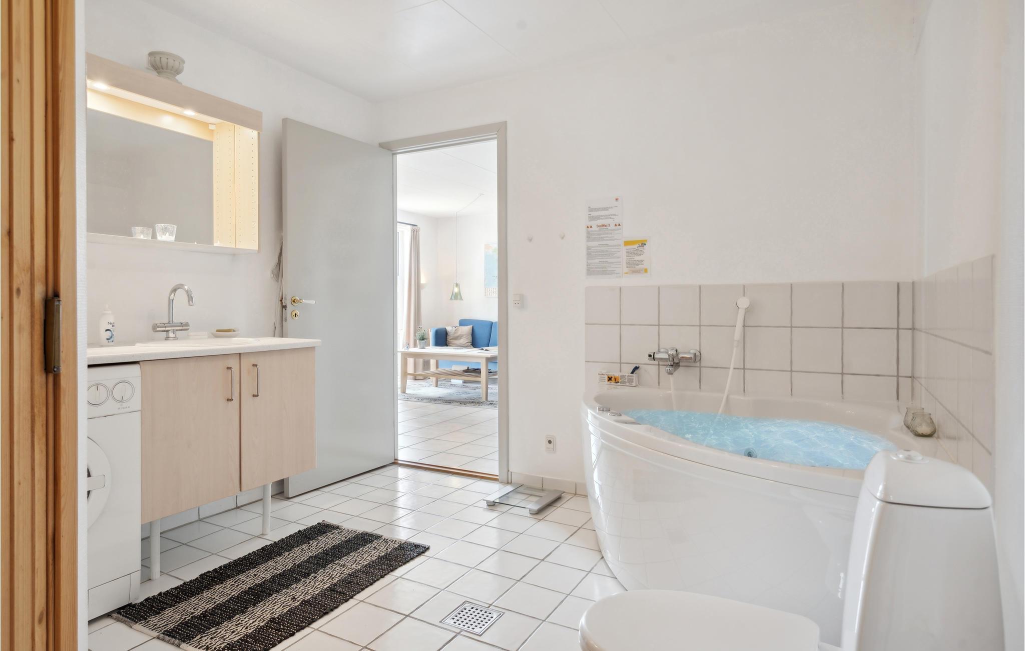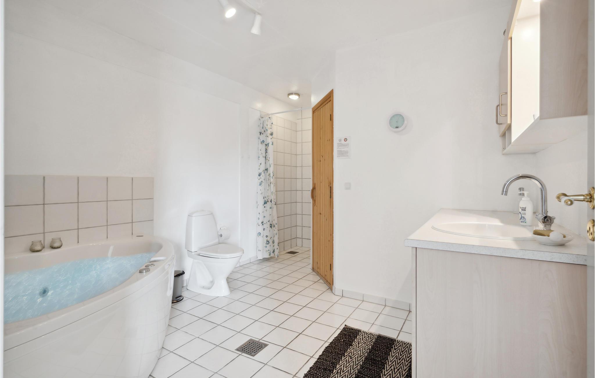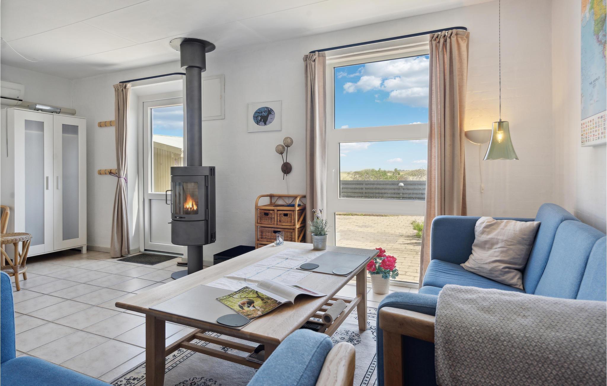 I det naturskønne område mellem Ringkøbing Fjord og Vesterhavet byder dette feriehus jer velkommen. Det komfortable interiør strækker sig over to etager og gør et lyst og indbydende indtryk. Føl jer godt tilpas i husets afslappede atmosfære og nyd udsigten over fjorden fra første sal. Efter en lang gåtur i den friske luft kan I nyde varmen og lade musklerne slappe af i saunaen eller i spabadet. Tilbring solrige timer ude på jeres terrasse og tilbered senere en sommerlig middag på den fælles grill.