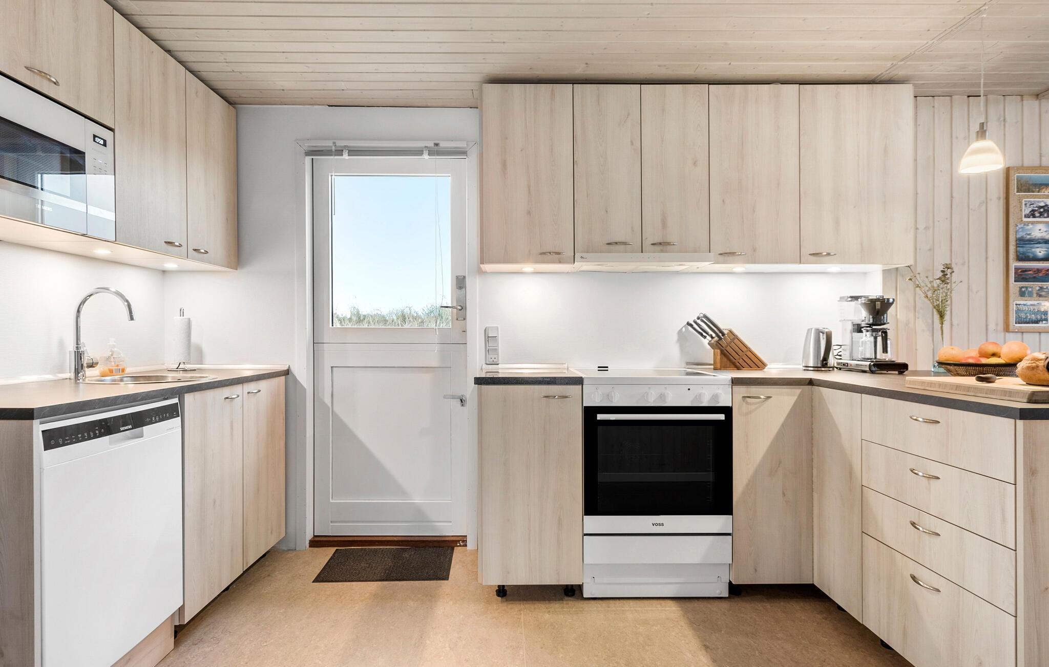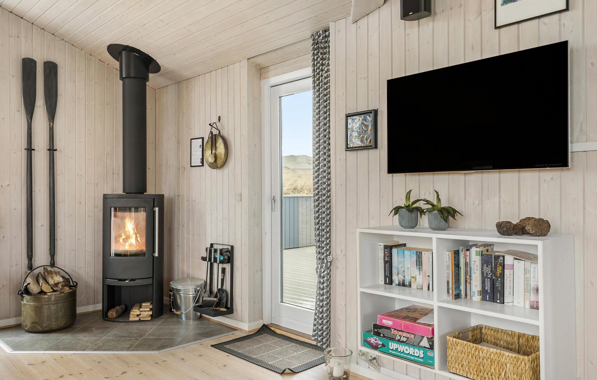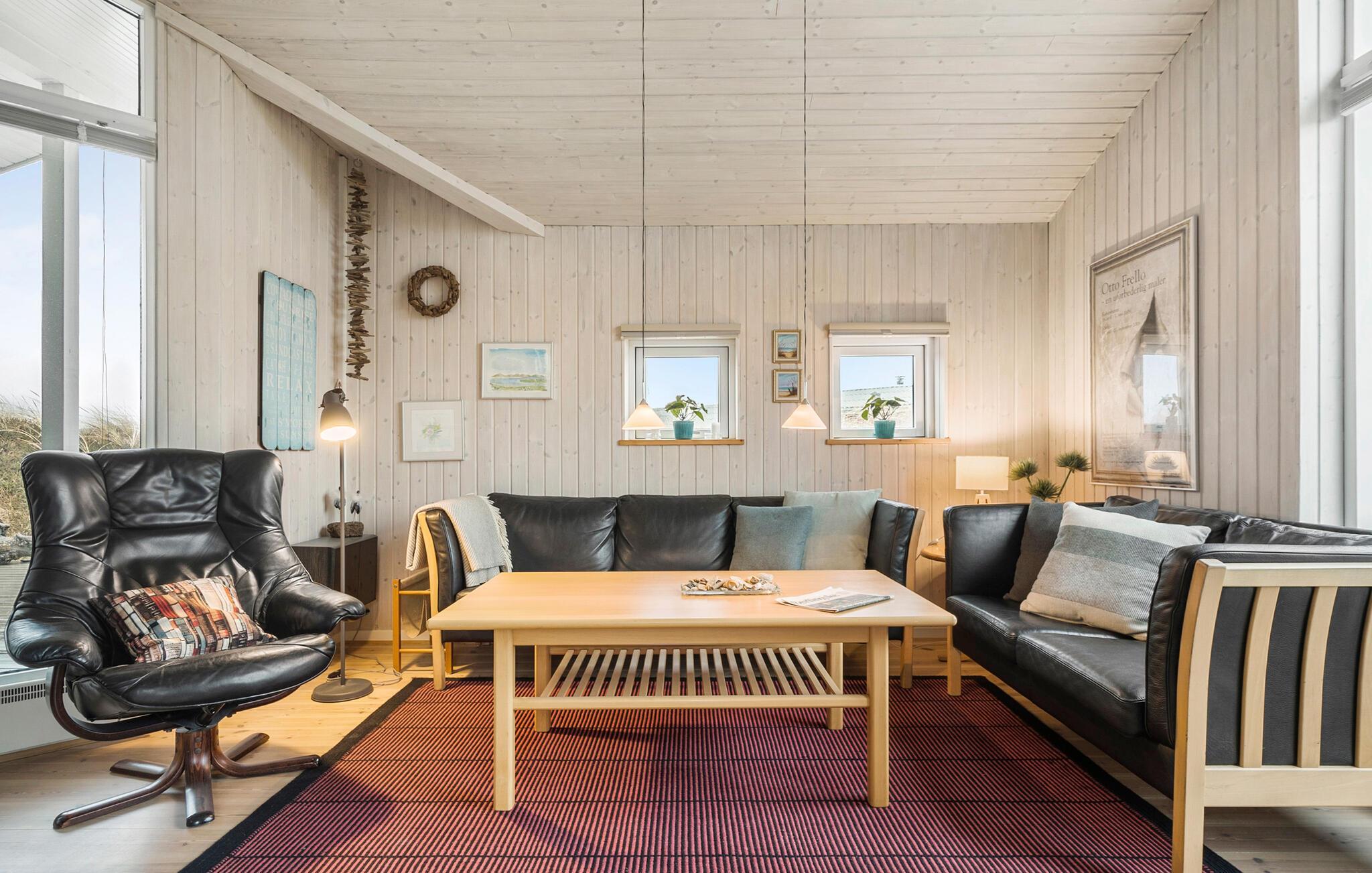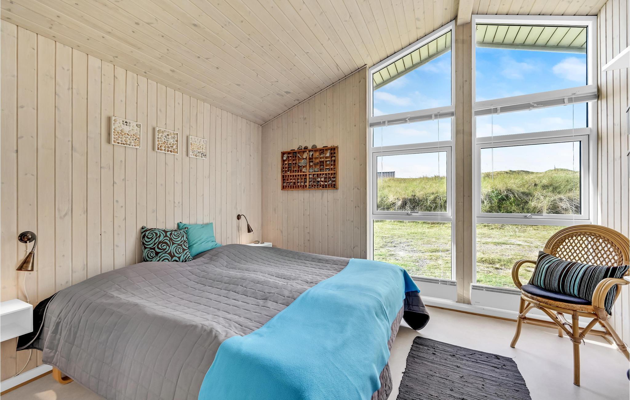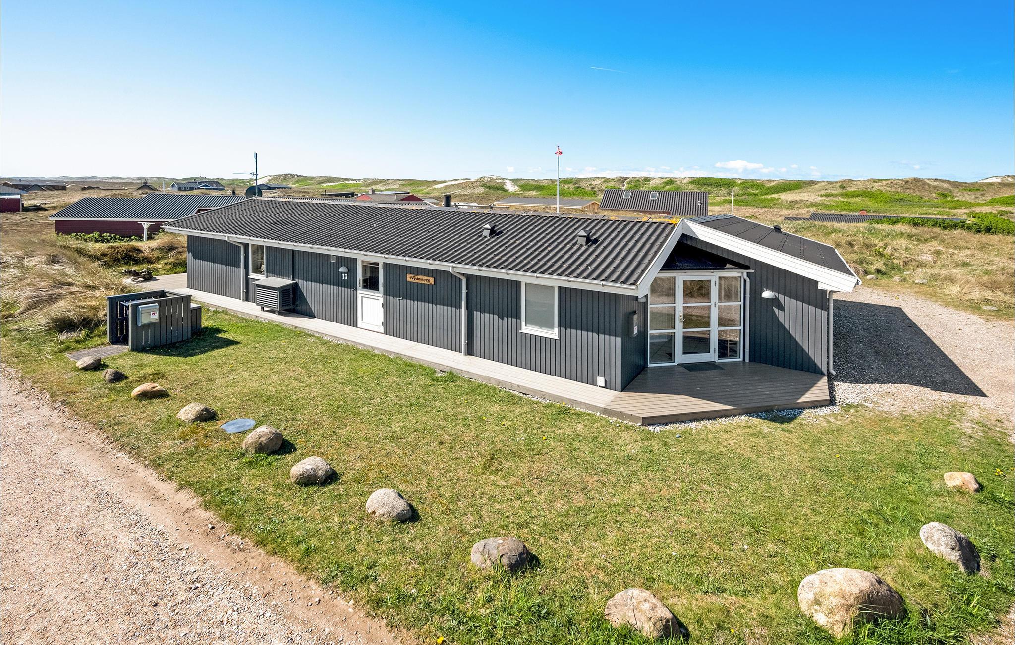Dette skønne og meget velholdte feriehus, der ligger på en kuperet klitgrund, er lyst, venligt og moderne indrettet. Huset ligger for enden af en stille vej i rolige omgivelser, ud mod et klitareal og meget tæt på Vesterhavet, klitterne og den brede, hvide sandstrand. Her er flere skønne terrasser som indbyder til afslapning, solbadning og hyggelige grillaftner mens I kan sidde i læ for vinden og lytte til bølgerne der slår mod stranden. Huset rummer en stor, lys stue, i åben kombination med køkken og to komplette badeværelser, hvoraf det ene er med spa og det andet direkte adgang til sauna. Der er lagt vægt på kvalitet og hygge, wellness og komfort. I hele huset er der træ- og klinkegulve, og ingen faste tæpper. Ude og inde er der mange muligheder for aktiviteter for både børn og voksne. Et skønt sted til ferie, uanset årstid.
